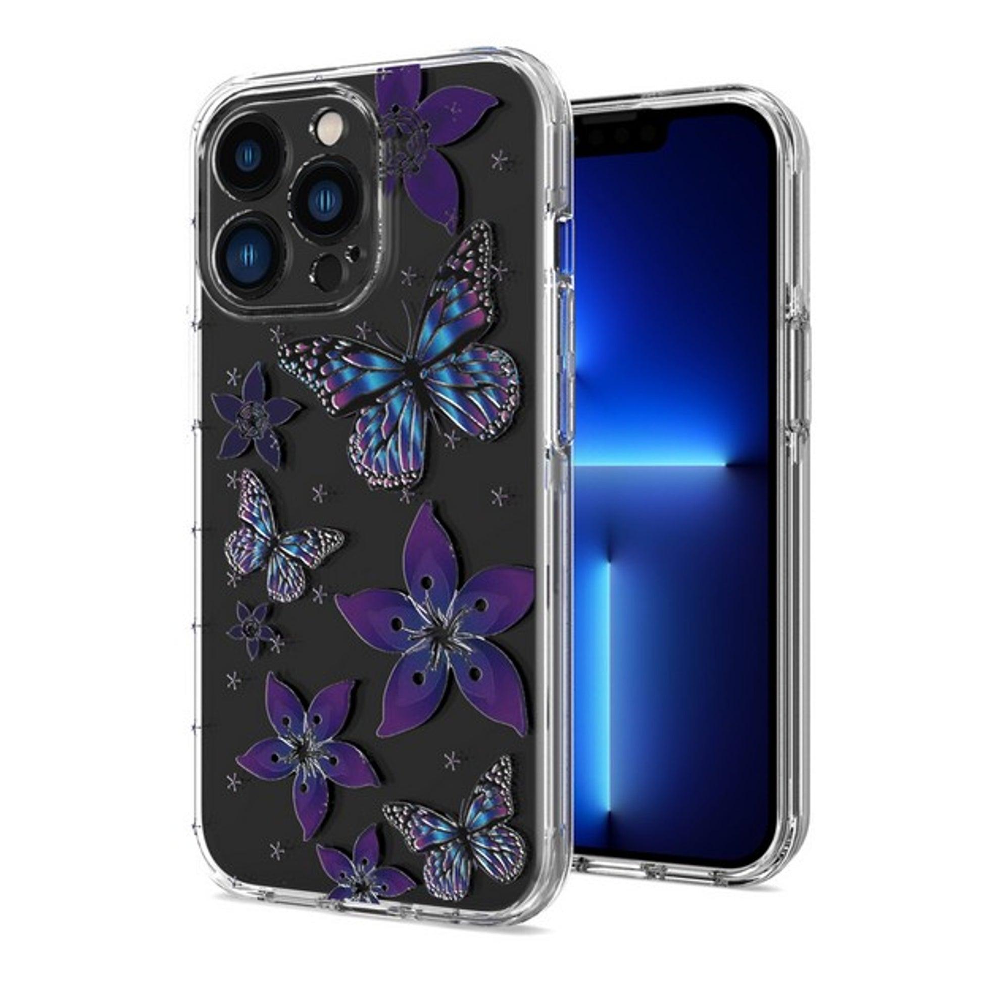 Apple iPhone 13 / Pro Max Mini Hybrid Trendy Image Patterns Design Transparent Hard Back Shockproof TPU Rubber Protective