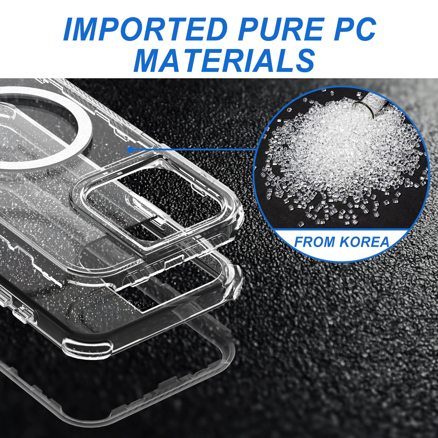 Cell Phone Case For iPhone 13 / iPhone 14 (6.1") MagSafe Compatible Magnetic Circle Ring Stylish Glitter Clear Heavy Duty Hybrid Hard PC Back Cover Shock Absorption Bumper Hard PC Back Soft TPU Frame Protective Phone Cover. Drop Protection: This shockproof protective case with rugged TPU, extra protection with reinforced bumper corners to protect phone from drops & shocks