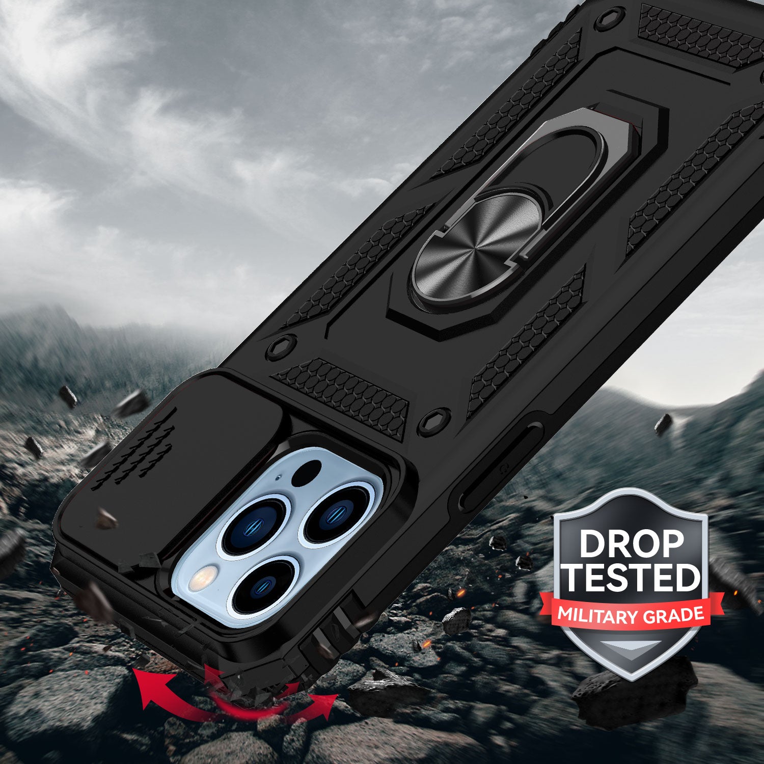 Well Protective Phone Case with Camera Cover & Stand, Slide Lens Protection and Built in 360° Rotatable Ring Holder, Soft Edge Bumper Protective Cover