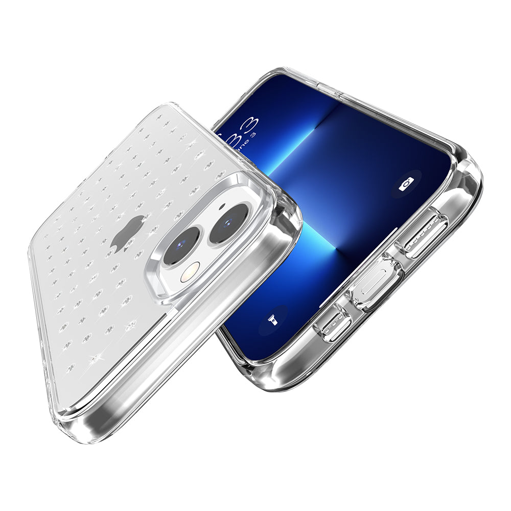 Clear Ultra Thick Clear Protective Case with High Quality TPU Full Transparency with Embedded Spot Diamonds Bling Rhinestone Design Hard PC Back Shockproof Cover