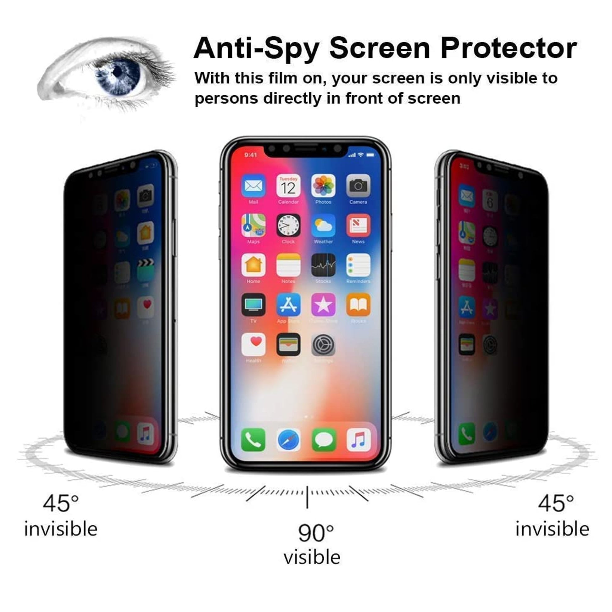 Anti Spy Dark Tempered Glass Screen Film Guard Privacy Screen Protector Bubble Free, Case Friendly, 9H Hardness, Full Coverage, Easy Installation, Precise Cutout Screen Protector