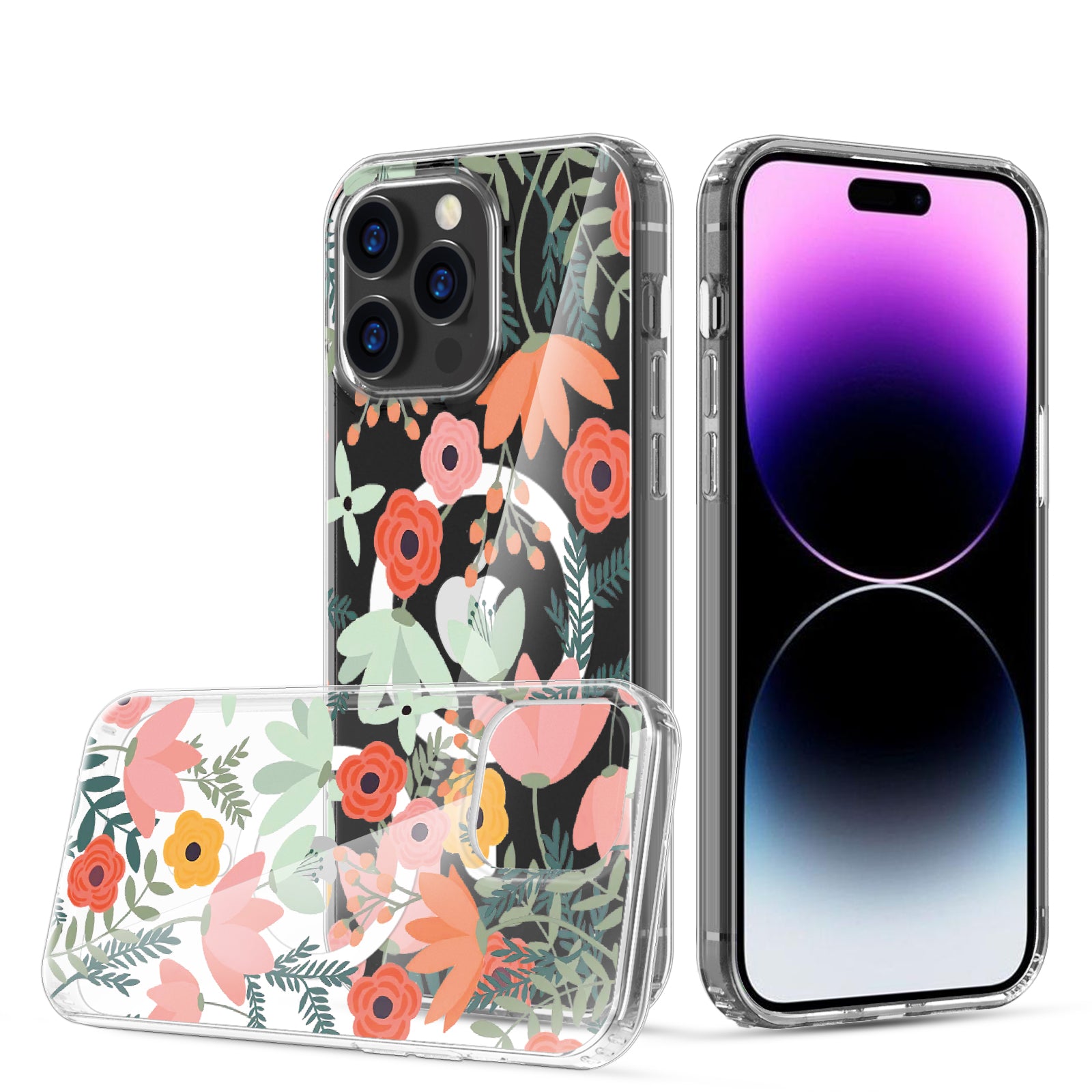 For Apple iPhone 14 /Plus Pro Max Clear Flower Pattern Design Compatible with MagSafe & Wireless Charging Phone Case Cover