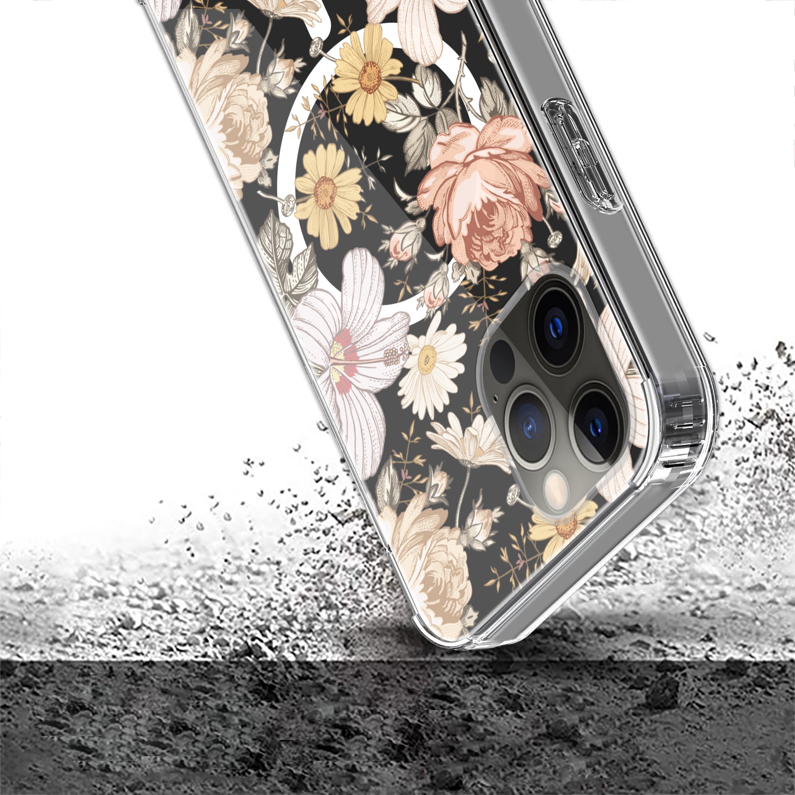 Belle Fleur Serries with Magsafe Compatible Clear Protactive Floral Design Slim Hybrid Case Shockproof Material, Slim Fit Cover