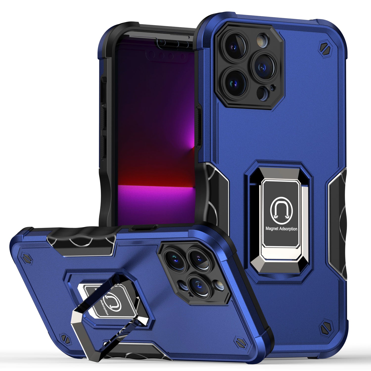 For Apple iPhone 14 Pro (6.1") Hybrid Cases with Magnetic Ring Holder Stand Kickstand Heavy Duty Rugged Shockproof Blue Phone Case Cover
