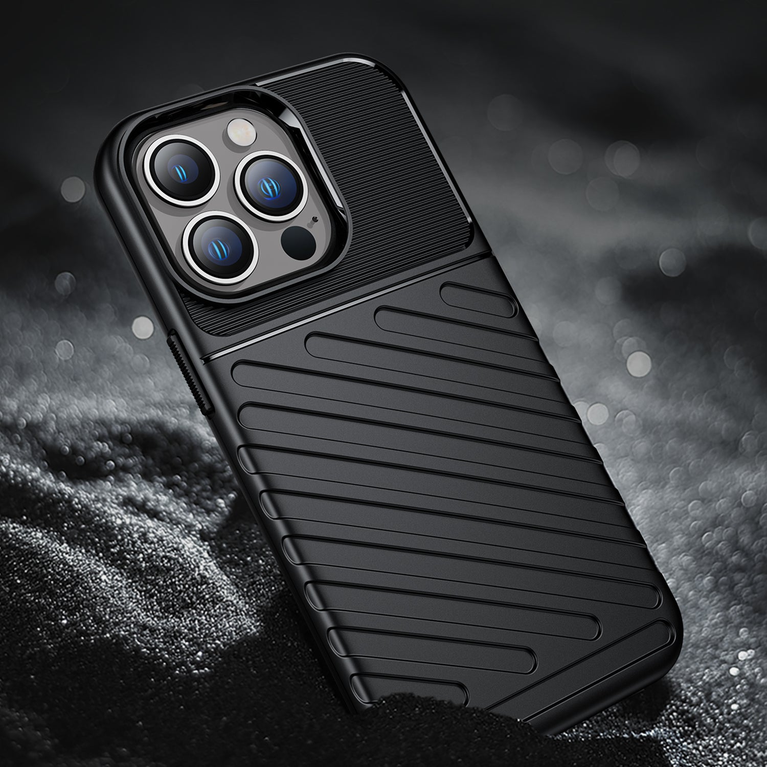 For Apple iPhone 14 Pro (6.1") Rugged Hybrid PC Soft Silicone Gel TPU Bumper Texture Shockproof Anti Slip Protective Stylish Phone Case Cover