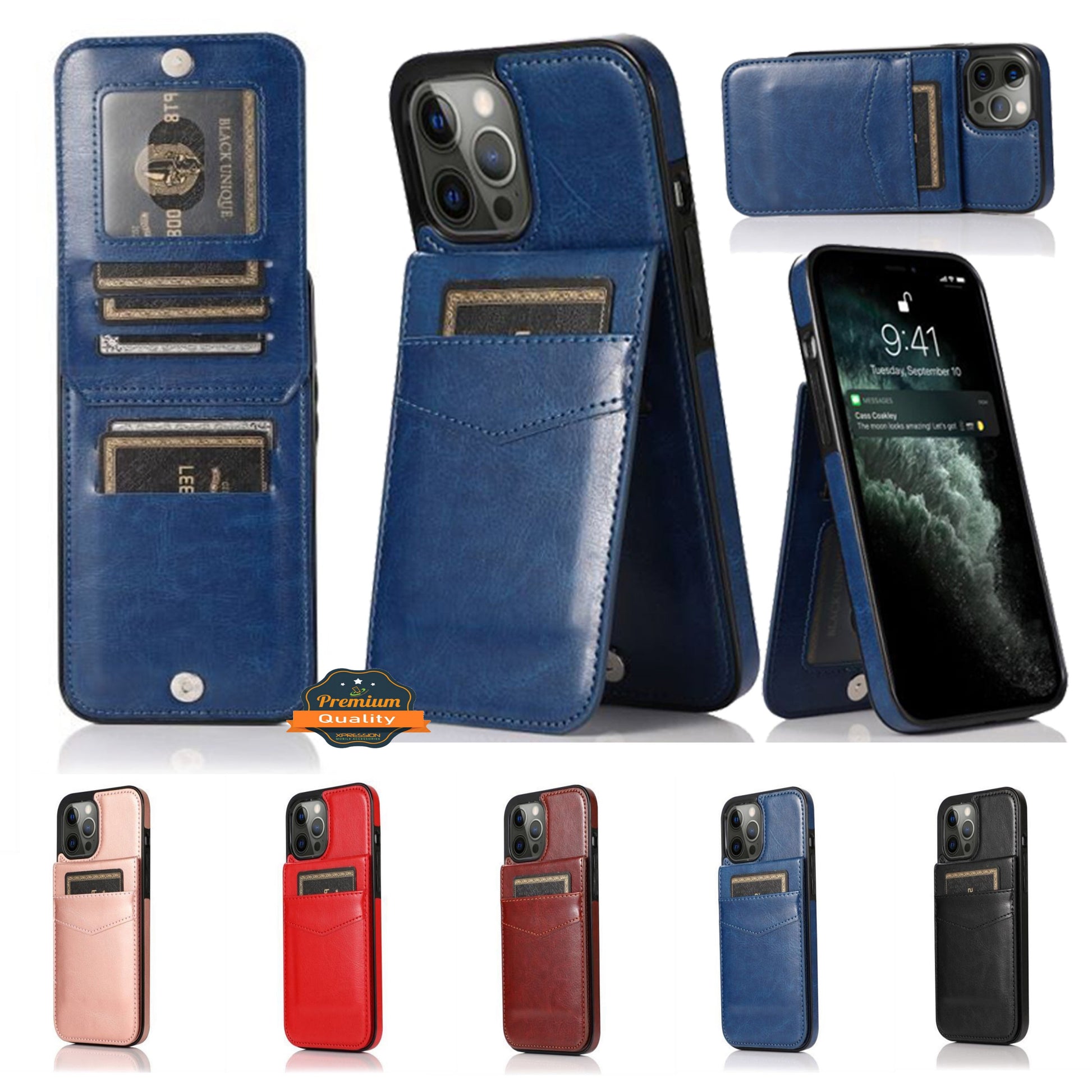 Vertical Wallet Case Card Holder PU Leather Magnetic Buttons Portrait Stand Kickstand Pouch Folio Flip Credit Card Storage Back Cover