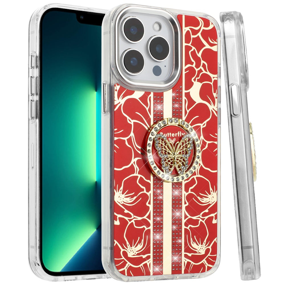 Phone Case Cover For iPhone 14 Pro Max Add charm and protection to your phone with this beautifully crafted floral case featuring a stylish butterfly ring stand. Designed with durability in mind, it includes a metal camera frame and precision metal buttons that enhance both protection and usability. The built-in ring stand allows for comfortable handling and convenient viewing, while the slim profile ensures compatibility with wireless charging and easy daily use.