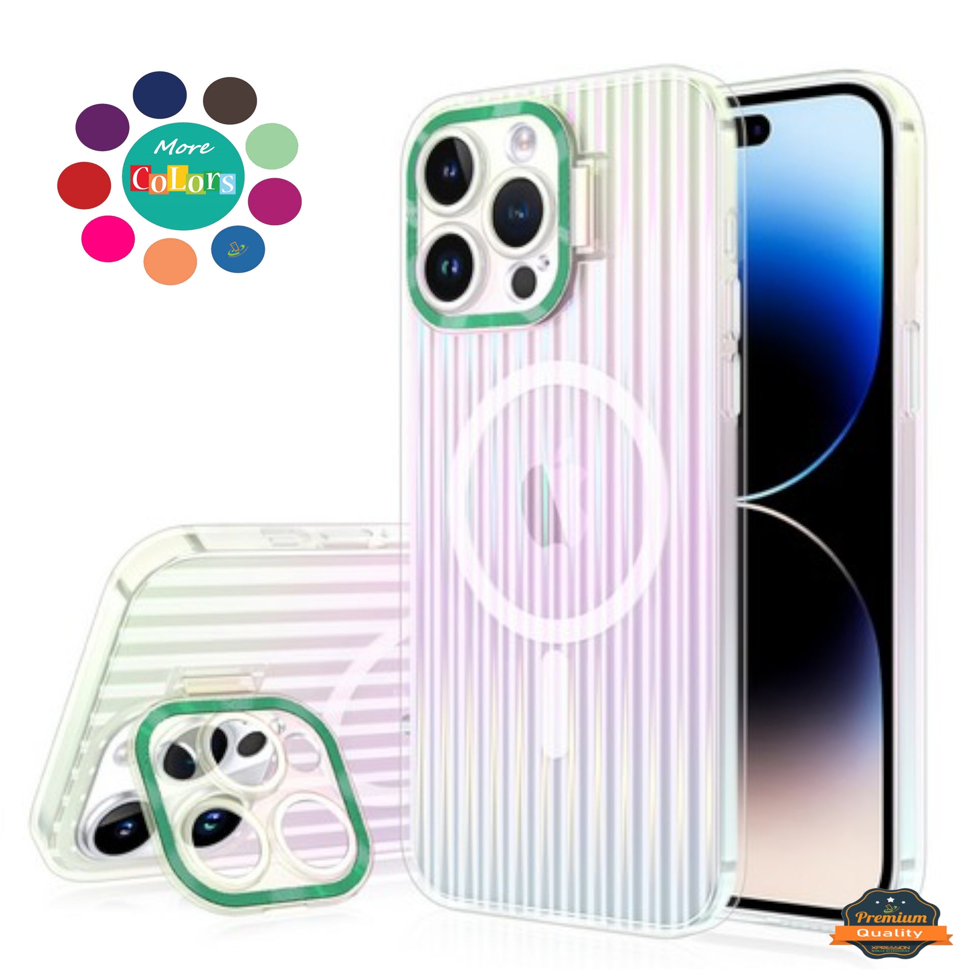 Hybrid Rainbow Color Reflect Case with Camera Stand Hard PC Back Silicone Edge Slim Full Camera Cover Protection Case