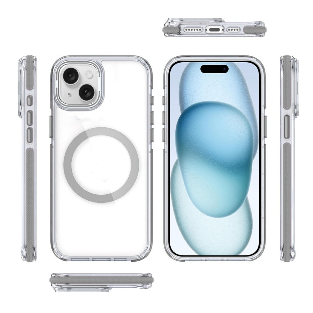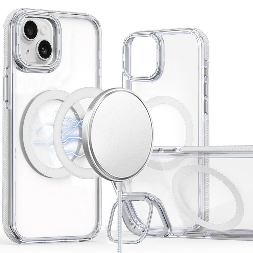 Phone Case Cover For iPhone 15 Protect and showcase your phone with this stylish hybrid case featuring a clear back to display your phone's sleek design. The invisible camera bracket stand allows convenient hands-free use, while the built-in MagSafe magnetic circle ensures compatibility with MagSafe chargers and accessories. A shockproof color frame adds a touch of elegance and reliable drop protection. Enjoy precise cutouts and responsive buttons for full functionality with this durable, versatile case.