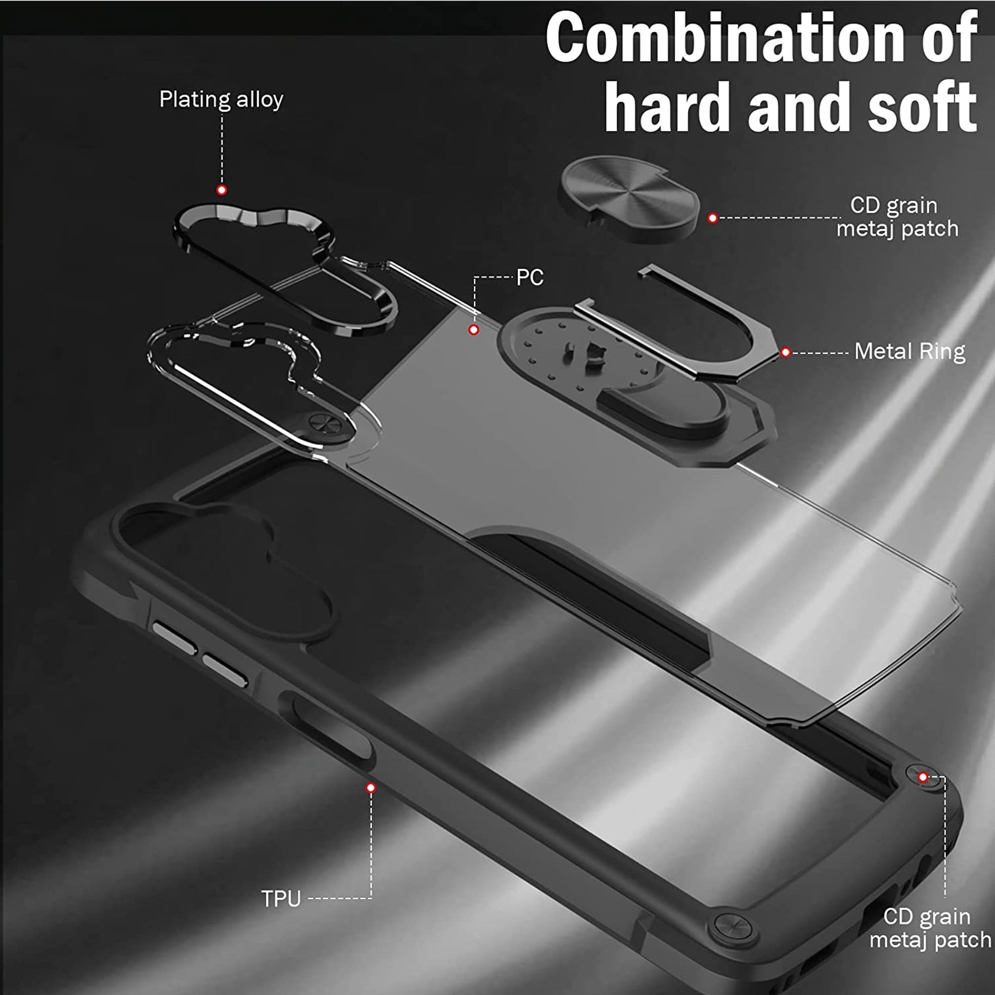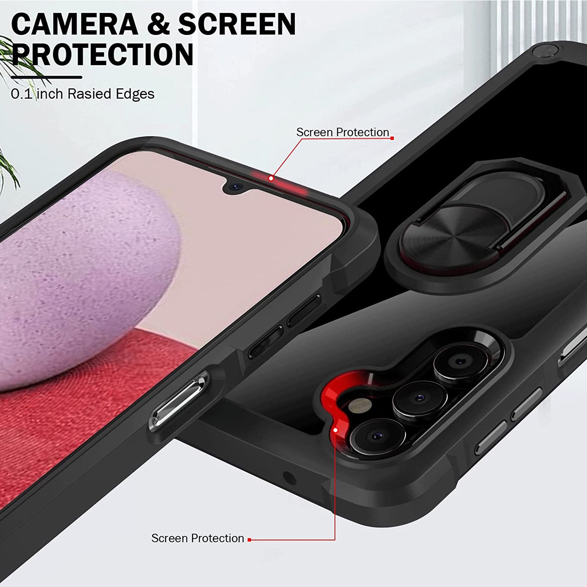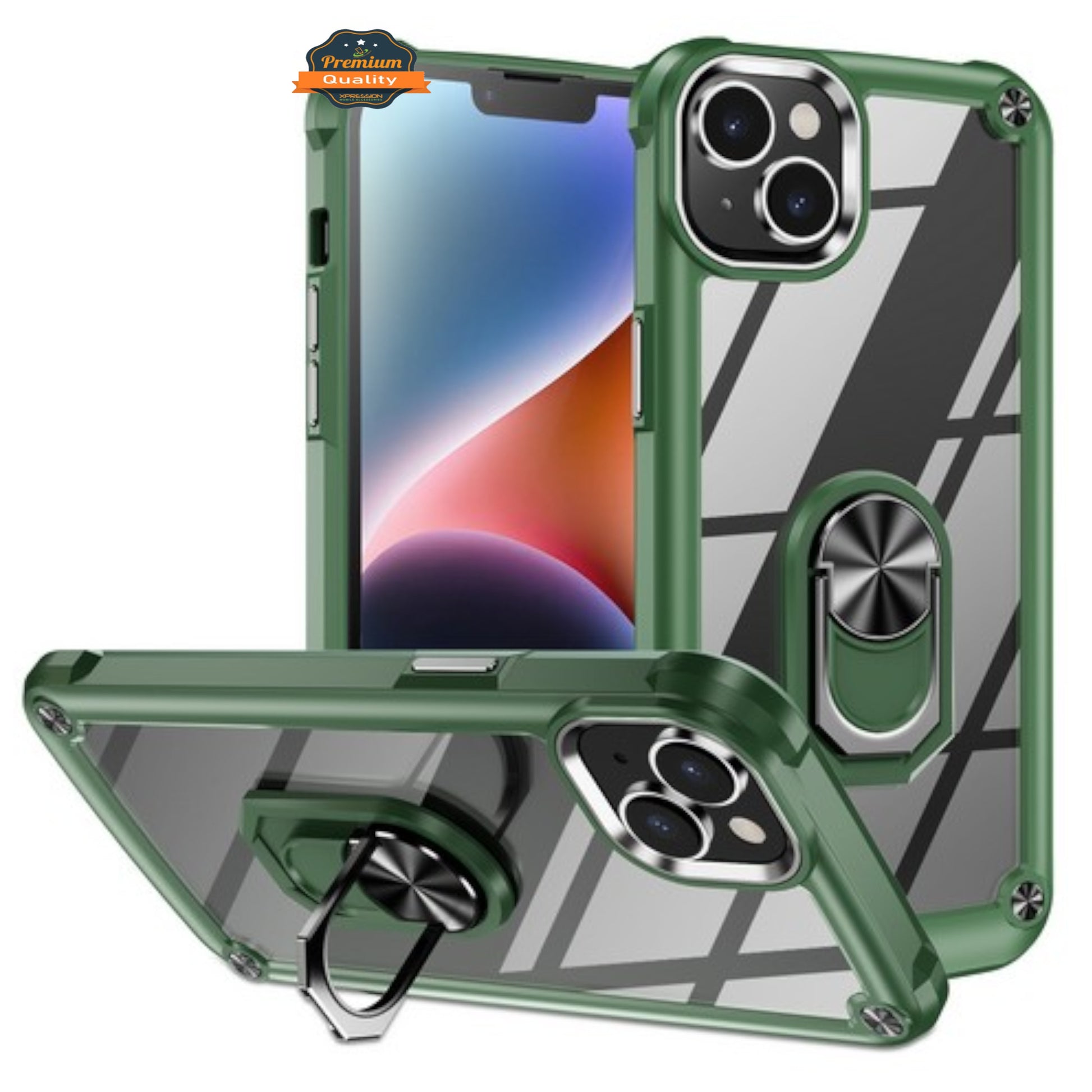 Built-in 360° Rotate Ring Stand Magnetic Car Mount Cover Heavy Duty Acrylic Shockproof Protective Clear Hard Back Soft Bumper Cover