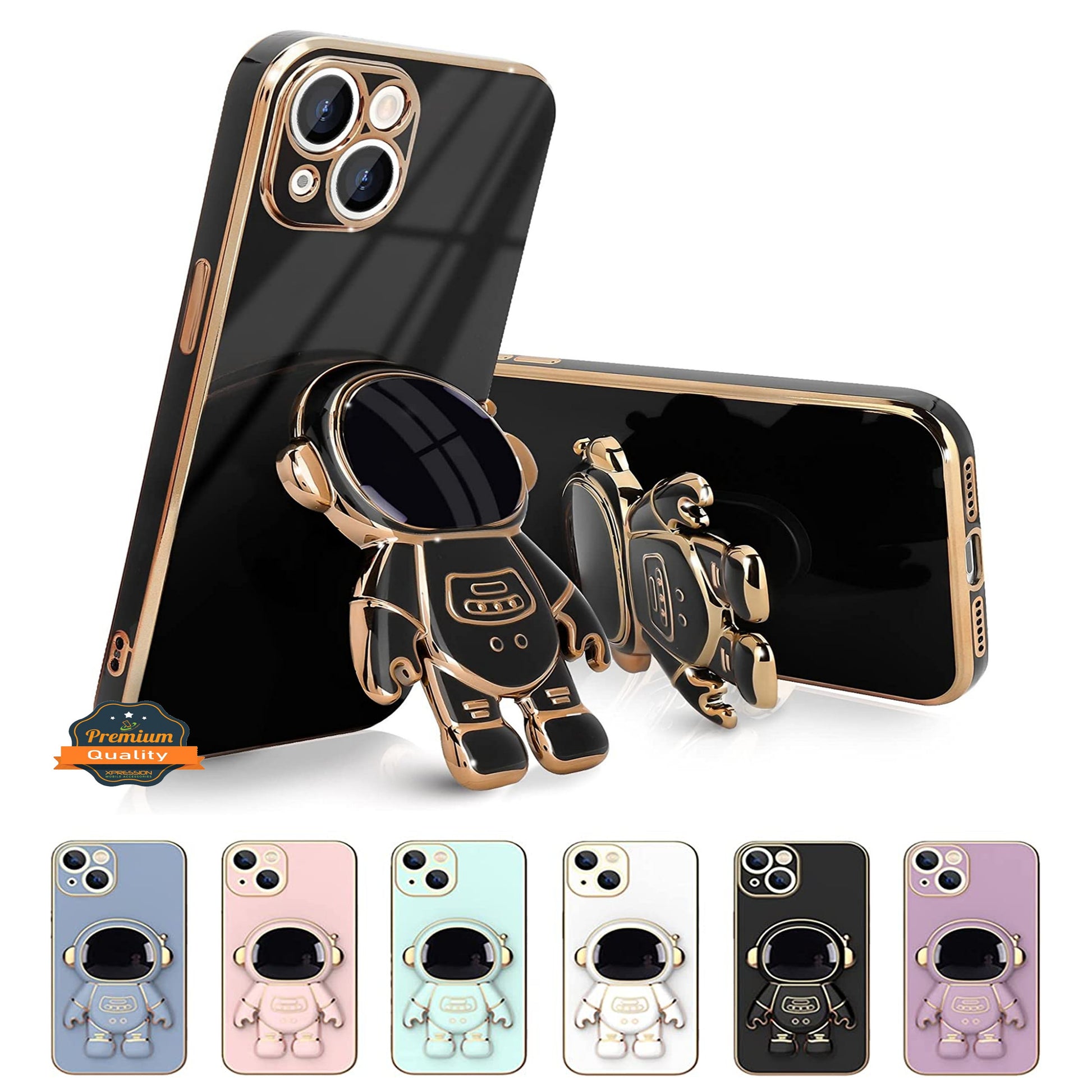 Cute 3D Astronaut Stand Design with Camera Protection Shockproof Soft Back Cover Luxury Plating Case Side Edge for Women Girls Cute Kickstand Phone Case Slim Soft TPU Cover