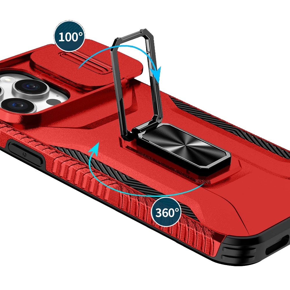 Phone Case Cover For iPhone 15 Pro Max Enhance the protection and functionality of your phone with this premium case. Featuring a built-in camera cover for lens protection and a magnetic rotation ring stand for hands-free convenience, this case combines style and durability. With military-grade shockproof construction, the hybrid hard TPU shell ensures superior protection against drops, scratches, and impacts. The slim, lightweight design keeps your phone easy to carry, while precise cutouts provide seamless access to all your phone's features.