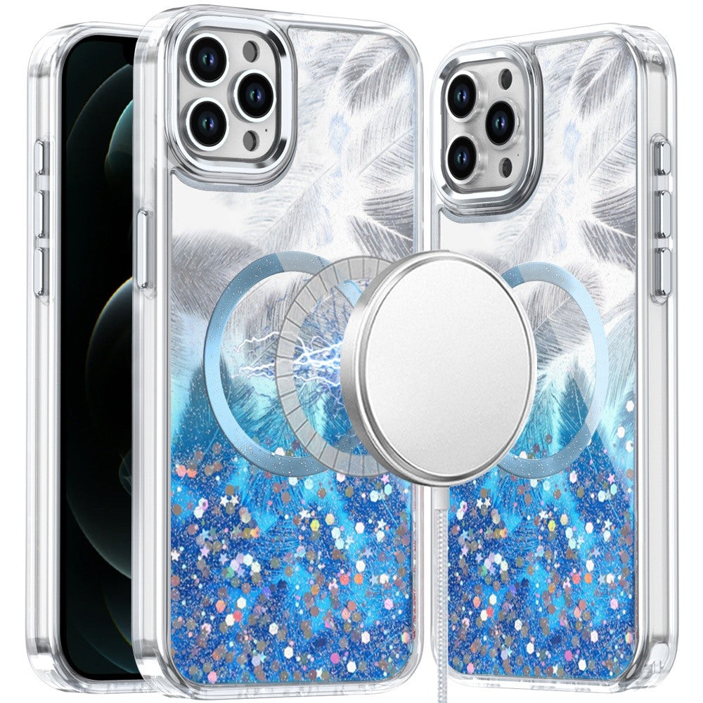 For Apple iPhone 15 Pro Max Epoxy Glitter Shimmer Fashion Case with Magnetic Magsafe Compatible Hybrid Sparkling Slim Protective Case Cover Blue