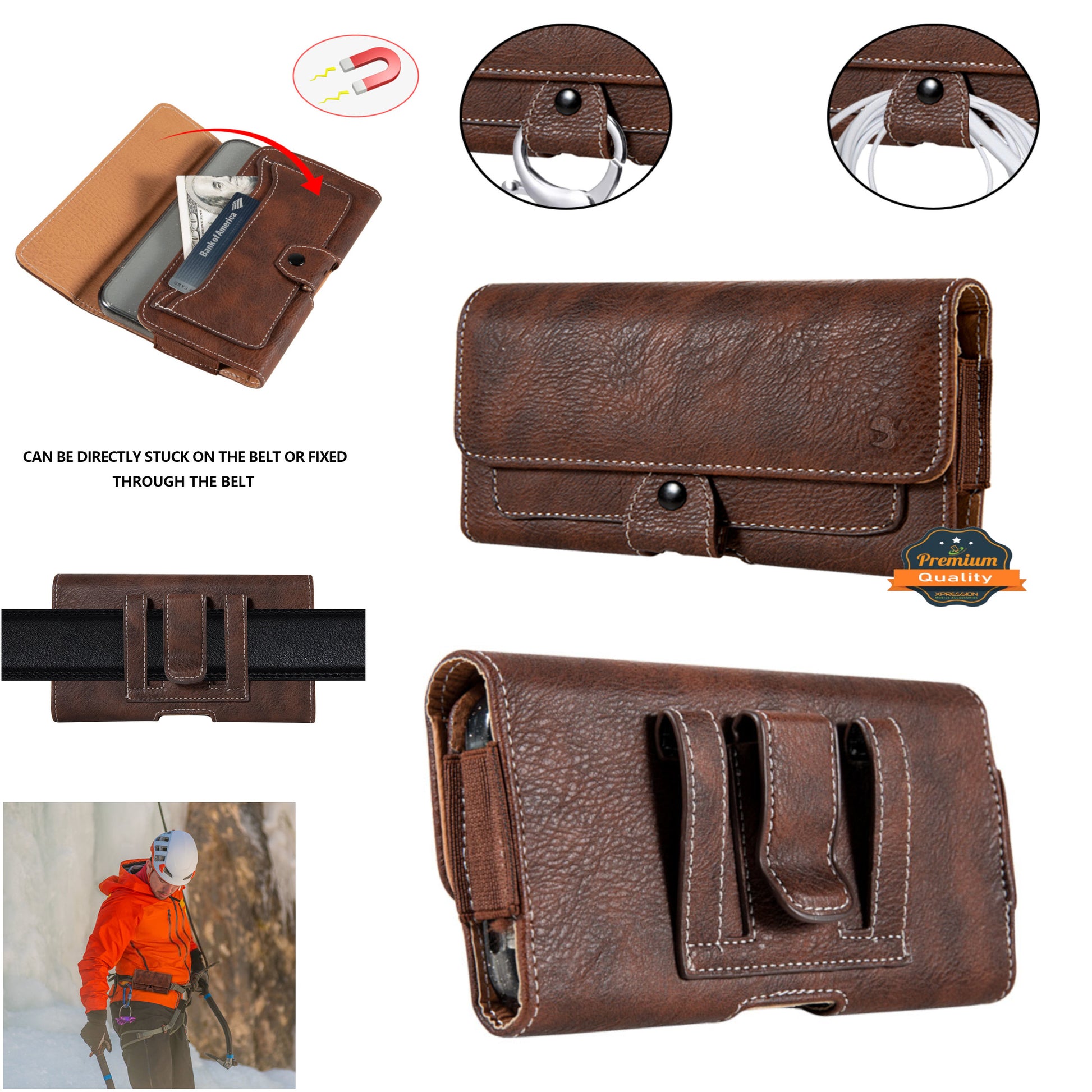 Premium Universal Horizontal PU Leather Case Pouch Holster with Credit Card Storage / Cash Pocket & Magnetic Closure with Belt Clip, Belt Loops Holster Carrying Phone Cover.