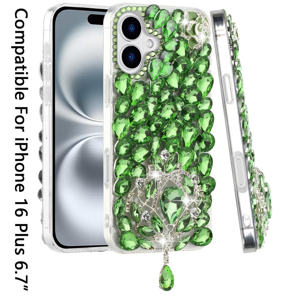For Apple iPhone 16 Plus (6.7") Bling Crystal 3D Full Diamonds Jewelry Luxury Sparkle Rhinestone Glitter Hybrid Protective Case Cover