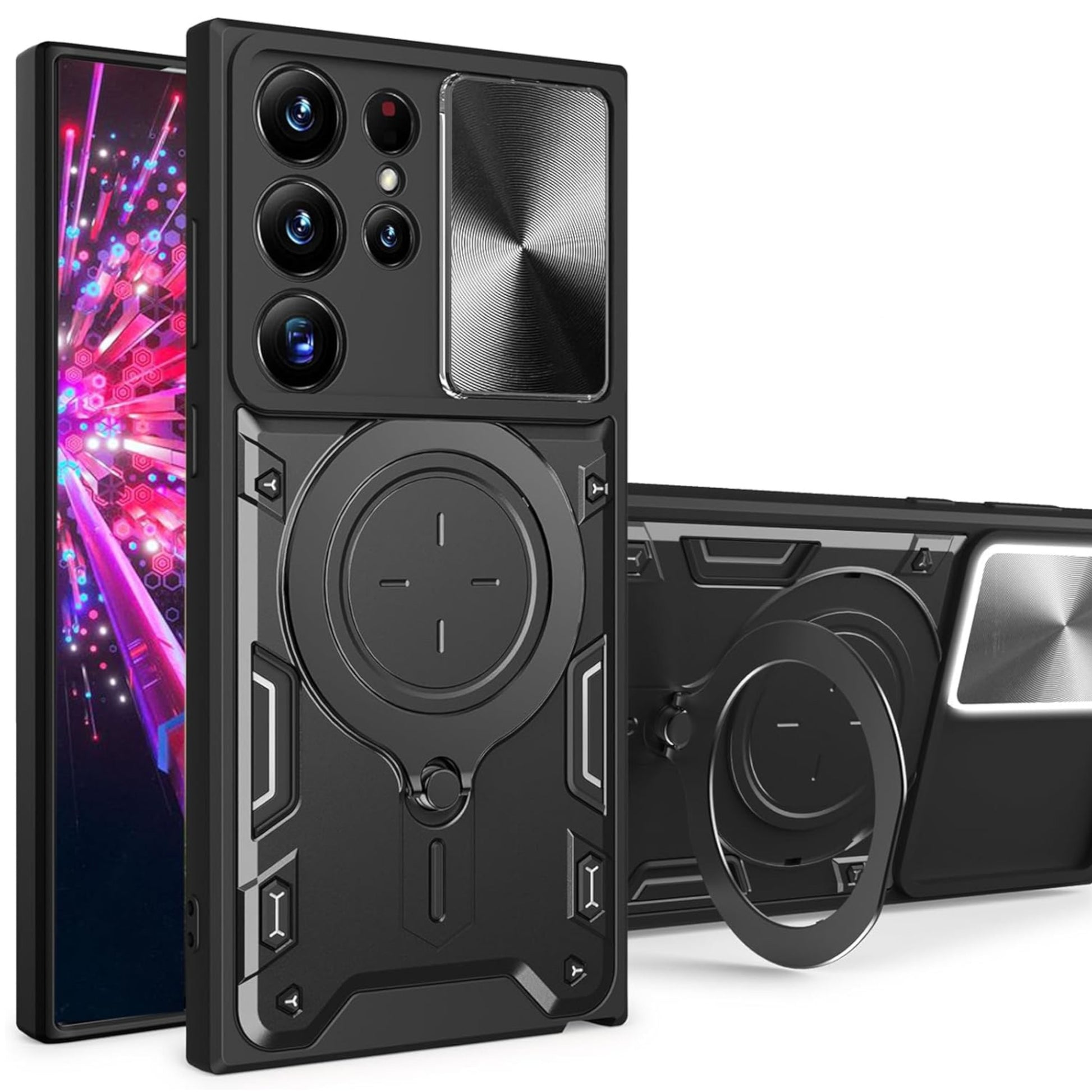 Case with Magnetic Ring Stand Invisible 360° Rotatable [Compatible with MagSafe] Military Grade with Camera Cover, Heavy Duty Shockproof Protective Cover