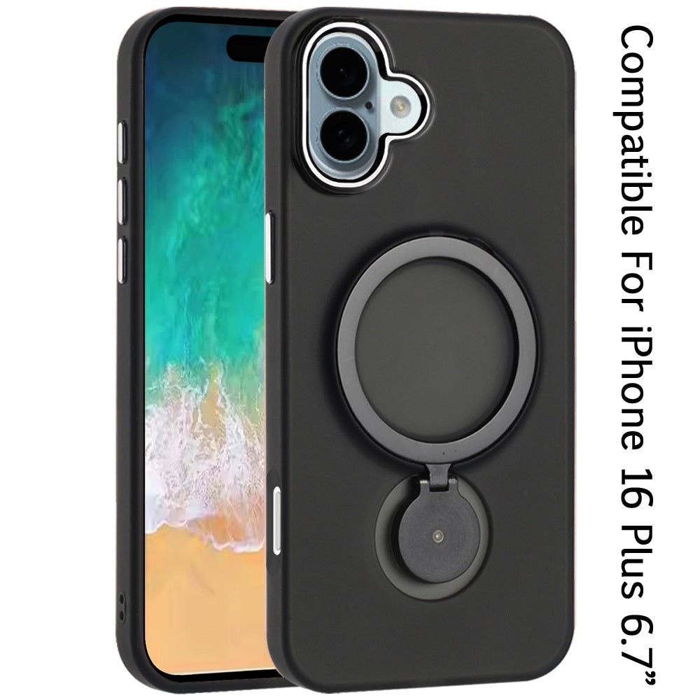 For Apple iPhone 16 Plus (6.7") MagSafe Compatible with 360 degree Circle Ring Stand Magnetic Kickstand Slim Hybrid Case Cover