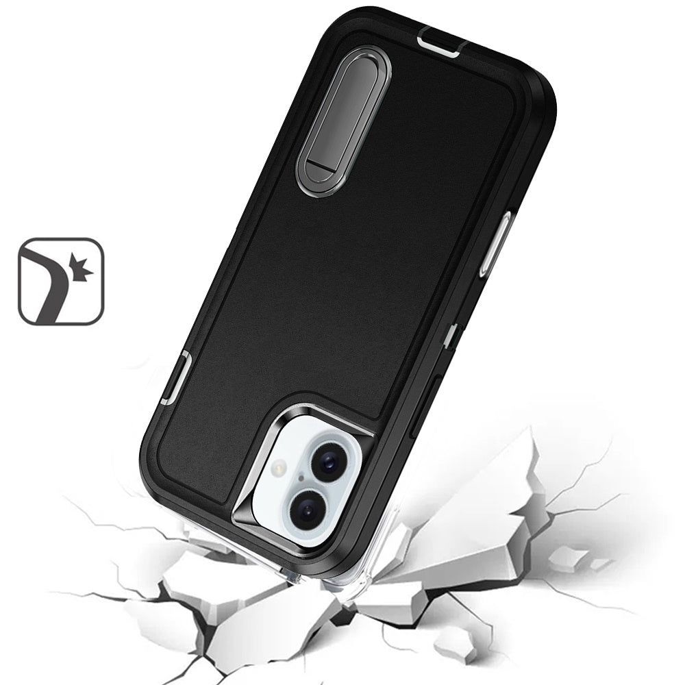 For Apple iPhone 16 Pro (6.3") Hybrid 3 Layers Hard 3in1 Shockproof with Kickstand Heavy Duty Hard TPU Rubber Anti-Drop Case Cover Black