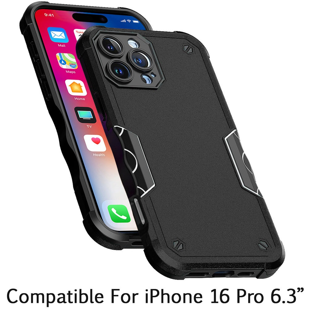 For Apple iPhone 16 Pro (6.3") Slim Tough Shockproof Hybrid Heavy Duty Dual Layer TPU Bumper Rugged Rubber Armor Case Cover