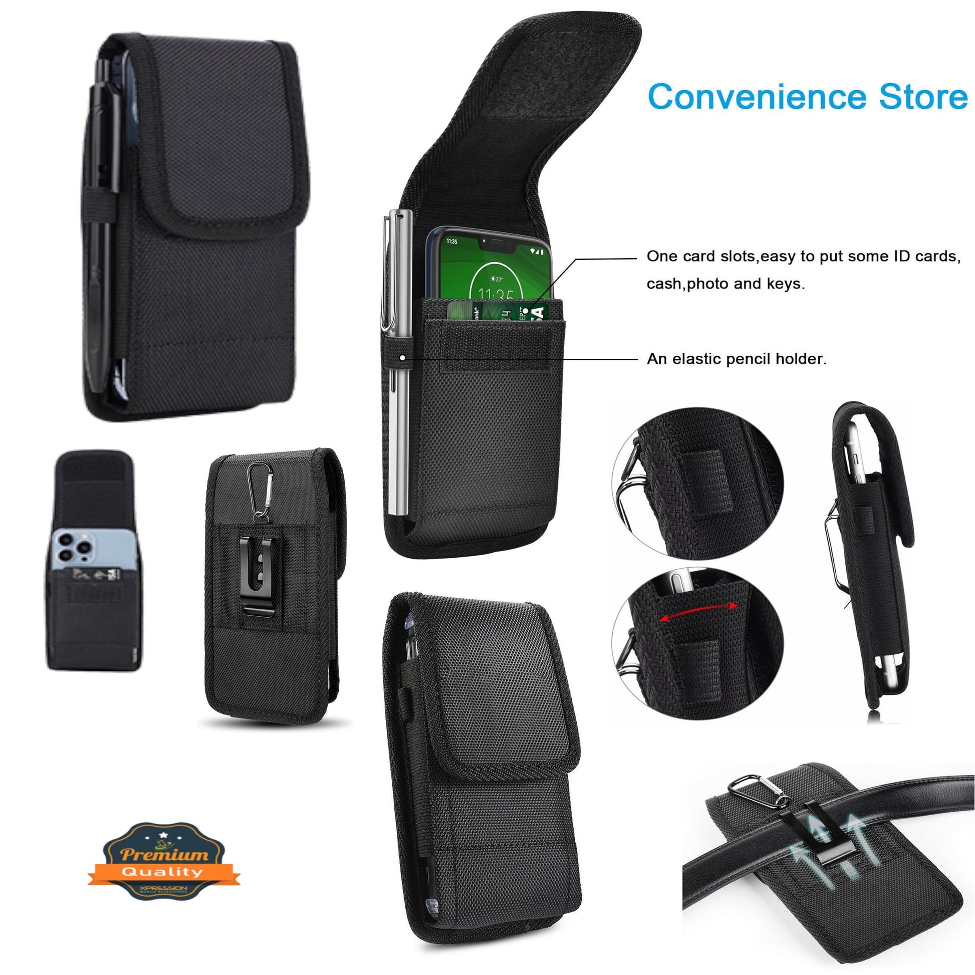 Premium Universal Vertical Nylon Pouch Rugged with ID Credit Card Storage & Belt Clip Holster, Carrying Cell Phone Pouch Velcro Closure Case Cover.