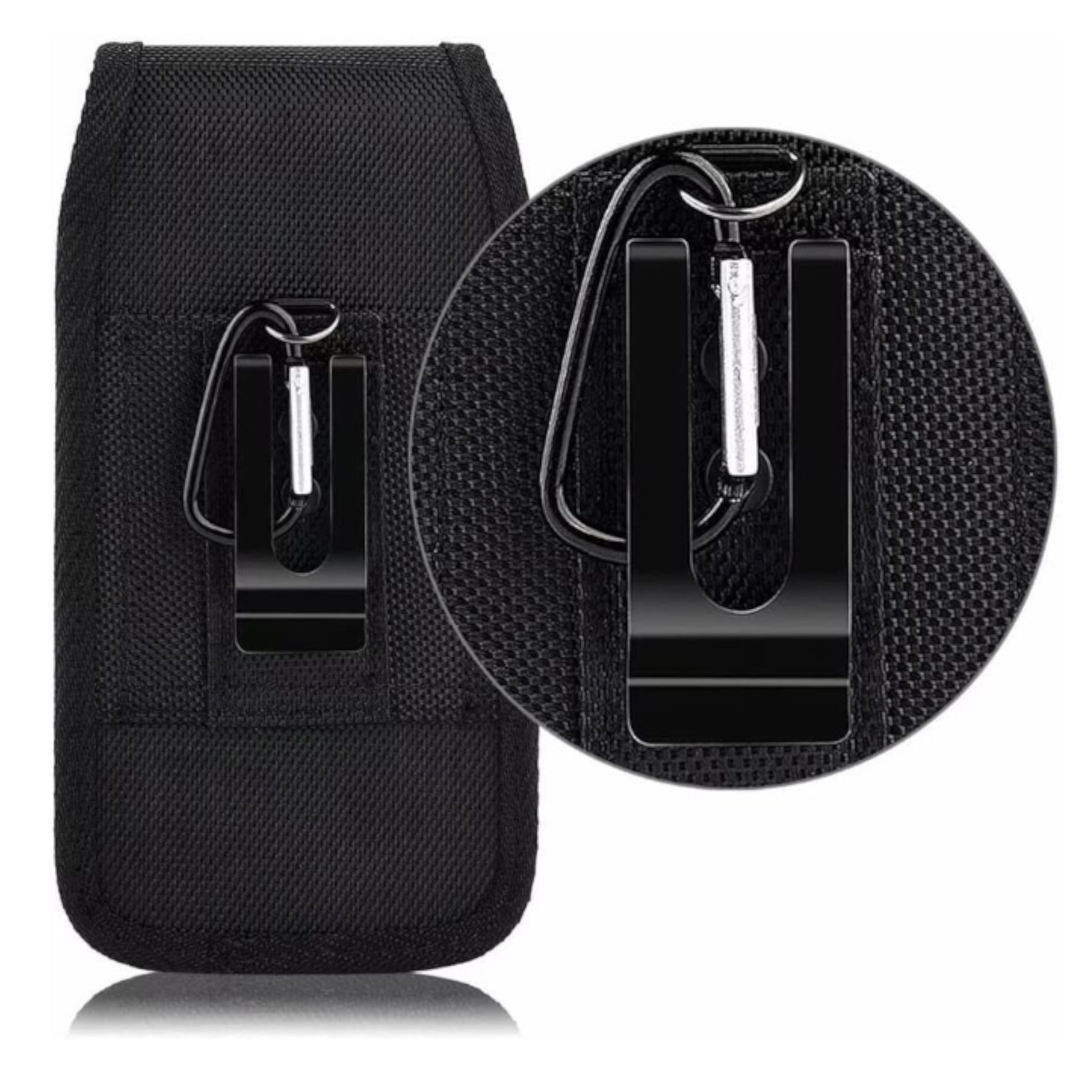 • Metal belt clip for quick clip-on/remove the pouch from belt, or run the belt through the pu leather loops to secure the pouch.