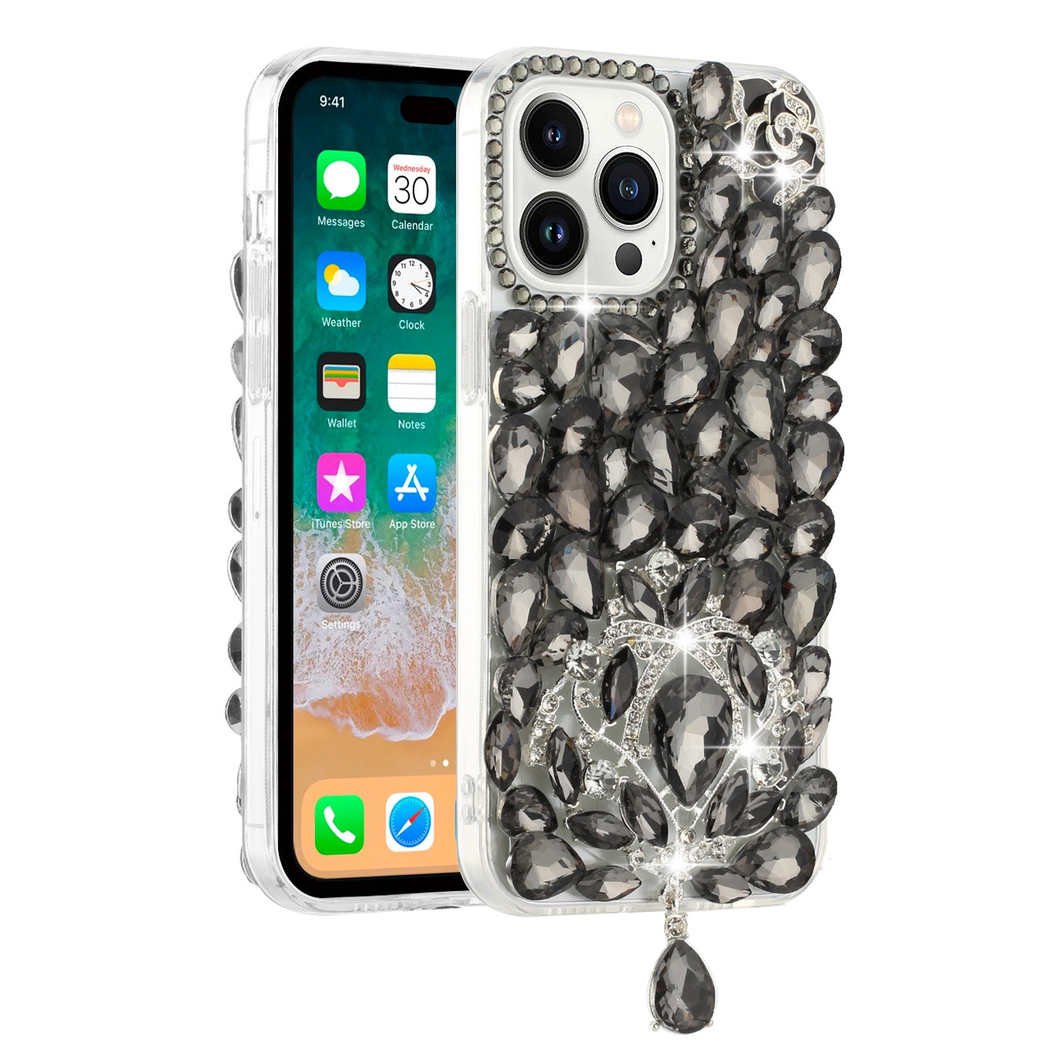 For Apple iPhone 16 Pro Max (6.9") Bling Crystal 3D Full Diamonds Jewelry Luxury Sparkle Rhinestone Glitter Hybrid Protective Case Cover