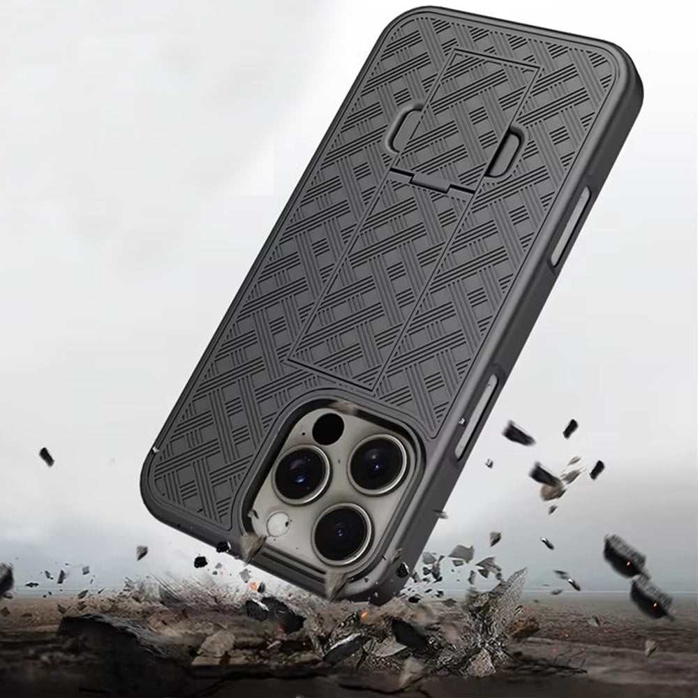 For Apple iPhone 16 Pro Max (6.9") Premium Hybrid Texture Built-in Kickstand Holster Combo 3in1 Swivel Belt Clip Slim Shockproof Case Cover Black