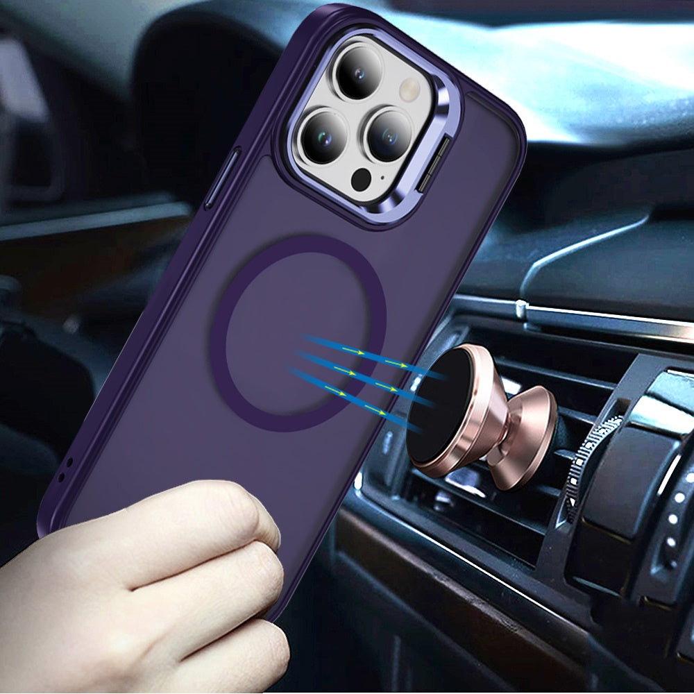 Phone Case Cover For iPhone 16 Pro Max Upgrade your phone with this Fearless Tough HQ Metallic Hybrid Case, designed for superior drop protection and durability. Featuring a built-in camera ring stand, it offers hands-free convenience and extra lens security. With MagSafe compatibility, enjoy seamless wireless charging and secure attachment to MagSafe accessories. The rugged hybrid design combines a hard back with soft edges, providing shockproof protection against drops and impacts. Precision cutouts ensure effortless access to all ports and buttons, while the sleek metallic finish enhances your phone's style. Stay protected without compromising on style and functionality!