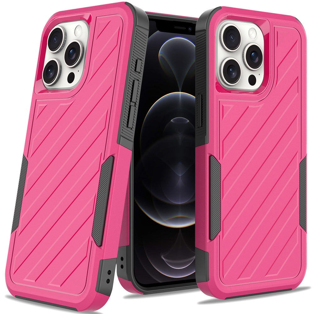 For Apple iPhone 16e Hybrid lined shockproof dual layer Rugged 2in1 Hard PC & Silicone TPU Non Slip Textured Tough Armor Case Cover Hot Pink