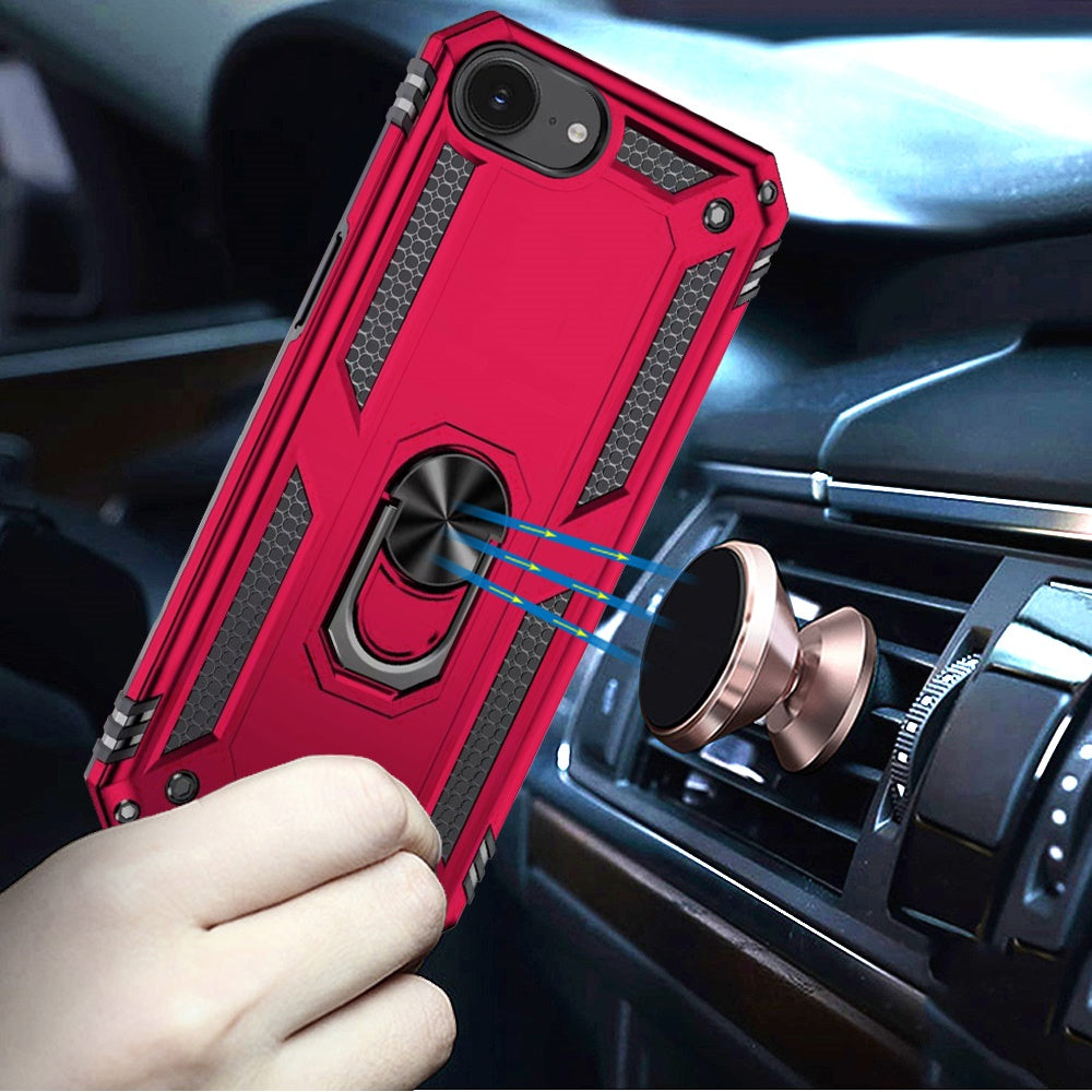 For Apple iPhone 16e Hybrid Shockproof Durable 360 Degree Rotatable Ring Stand Holder Kickstand Fit Magnetic Car Mount Case Cover