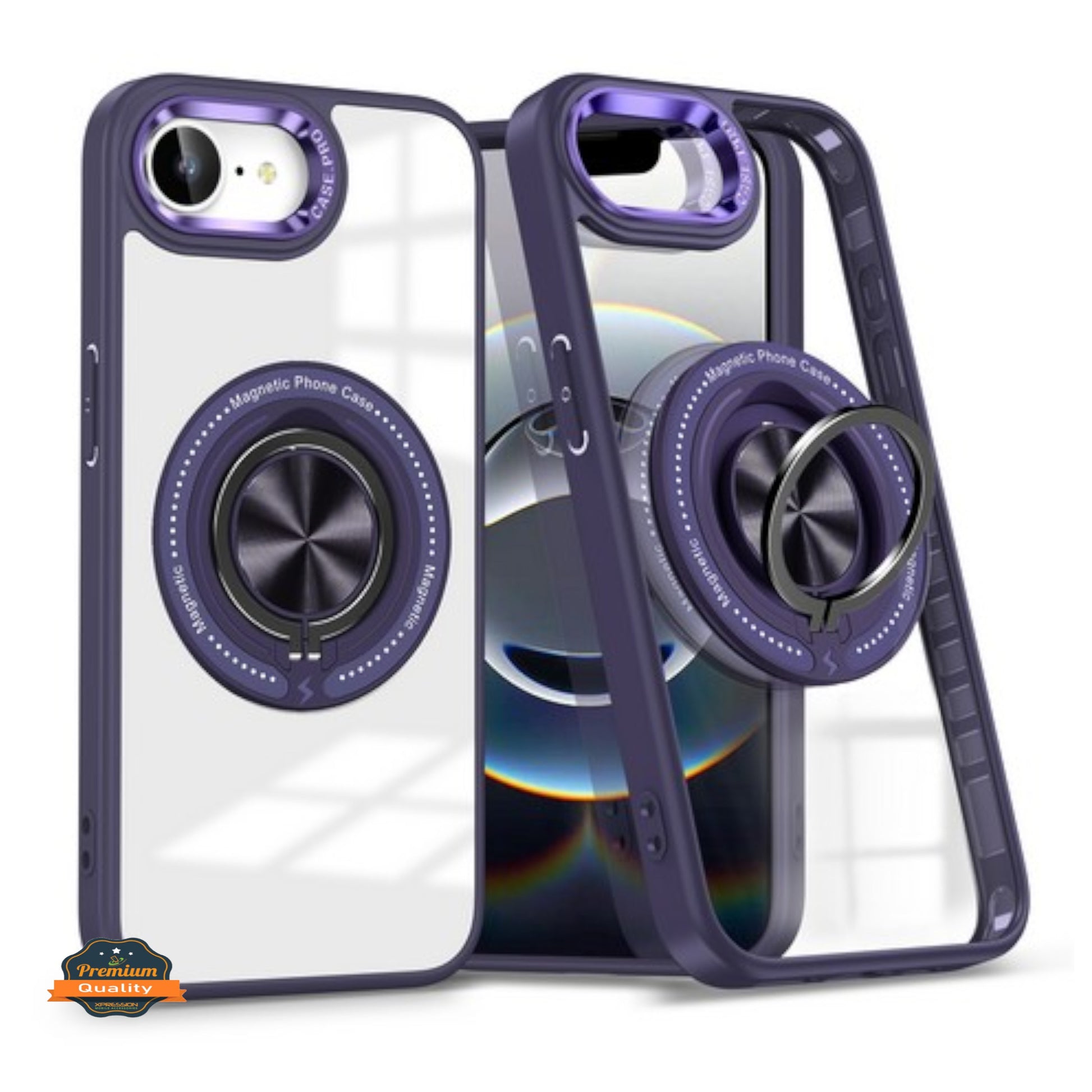• Compatible for Apple iPhone 16e (E edition) /iPhone SE 4 (6.1 inch), Clear transparent back highlights your phone's original design, Built-in rotating ring stand provides hands-free viewing convenience, MagSafe compatible for wireless charging and magnetic accessories, Slim hybrid design combines durable TPU and hard PC materials, Shockproof protection guards against drops; impacts; and scratches