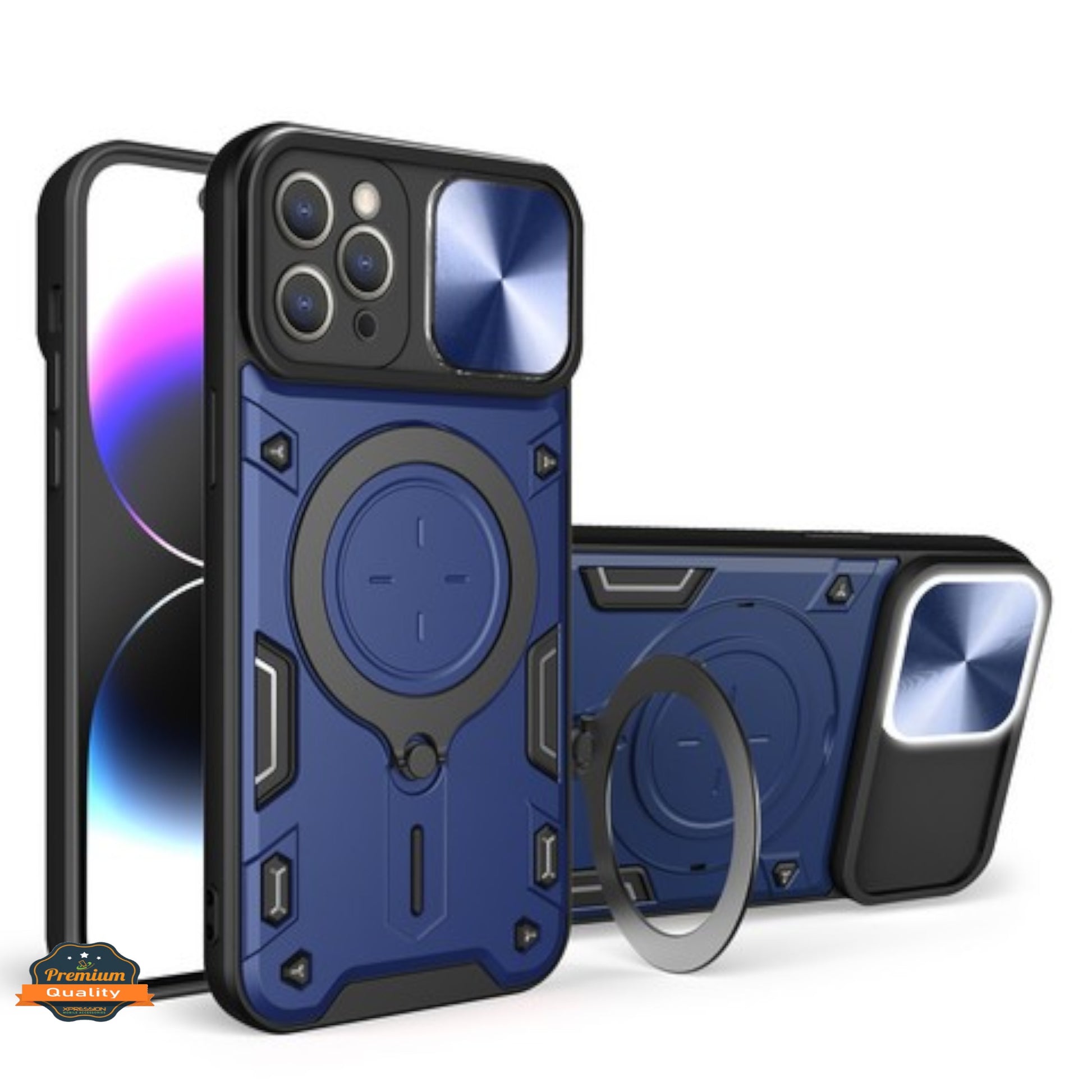 • Compatible for Apple iPhone 16e (E edition) /iPhone SE 4 (6.1 inch), Magnetic circle ring stand provides 360° rotation for hands-free use, MagSafe compatibility ensures seamless wireless charging, Sliding camera lens protector safeguards your camera from scratches and dust, Hybrid construction combines durable PC and TPU materials for superior protection, Slim yet shockproof design protects against drops and impacts, Easy access to all buttons; ports; and features with precise cutouts
