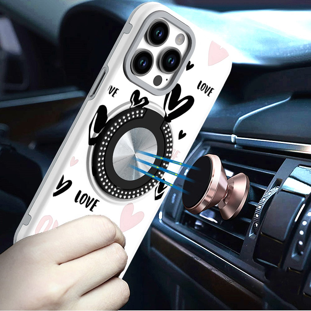 For Apple iPhone 16e Pattern Design Hybrid with Invisible Ring Stand & Magnetic Back, Shockproof Protective Grip Case Cover Love Heart Love