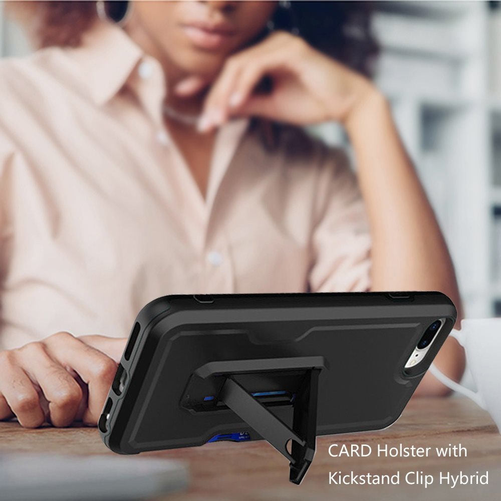 For Apple iPhone 8 Plus/7 Plus/6 6S Plus Armor Belt Clip with Credit Card Holder ID Slot, Holster, Kickstand Heavy Duty Hybrid Black Phone Case Cover