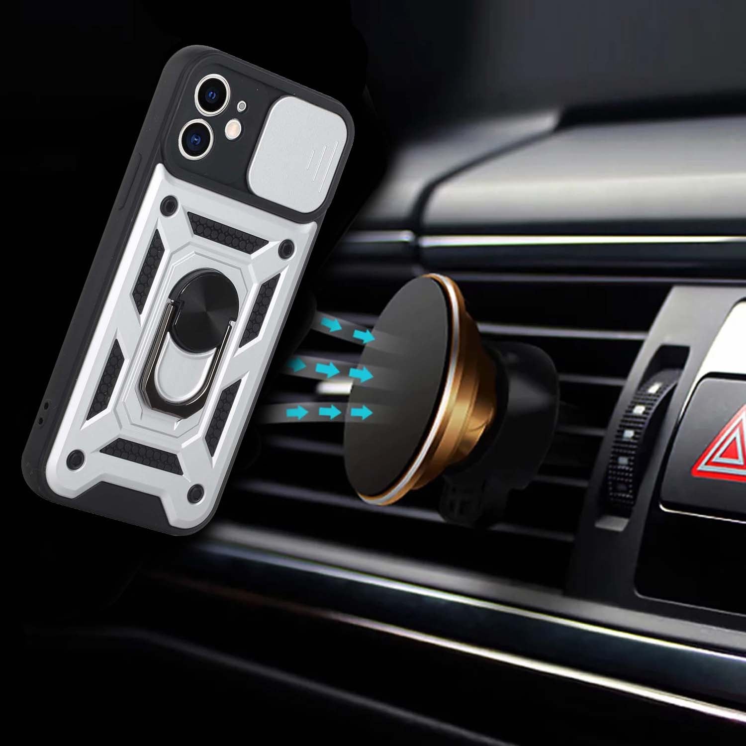 Silver Heavy Duty Armor Cover with Camera Cover Protection Magnetic Kickstand Bracket Defender Anti-Slip Shockproof Durable Hard Plastic Shell Rugged Bumper Case