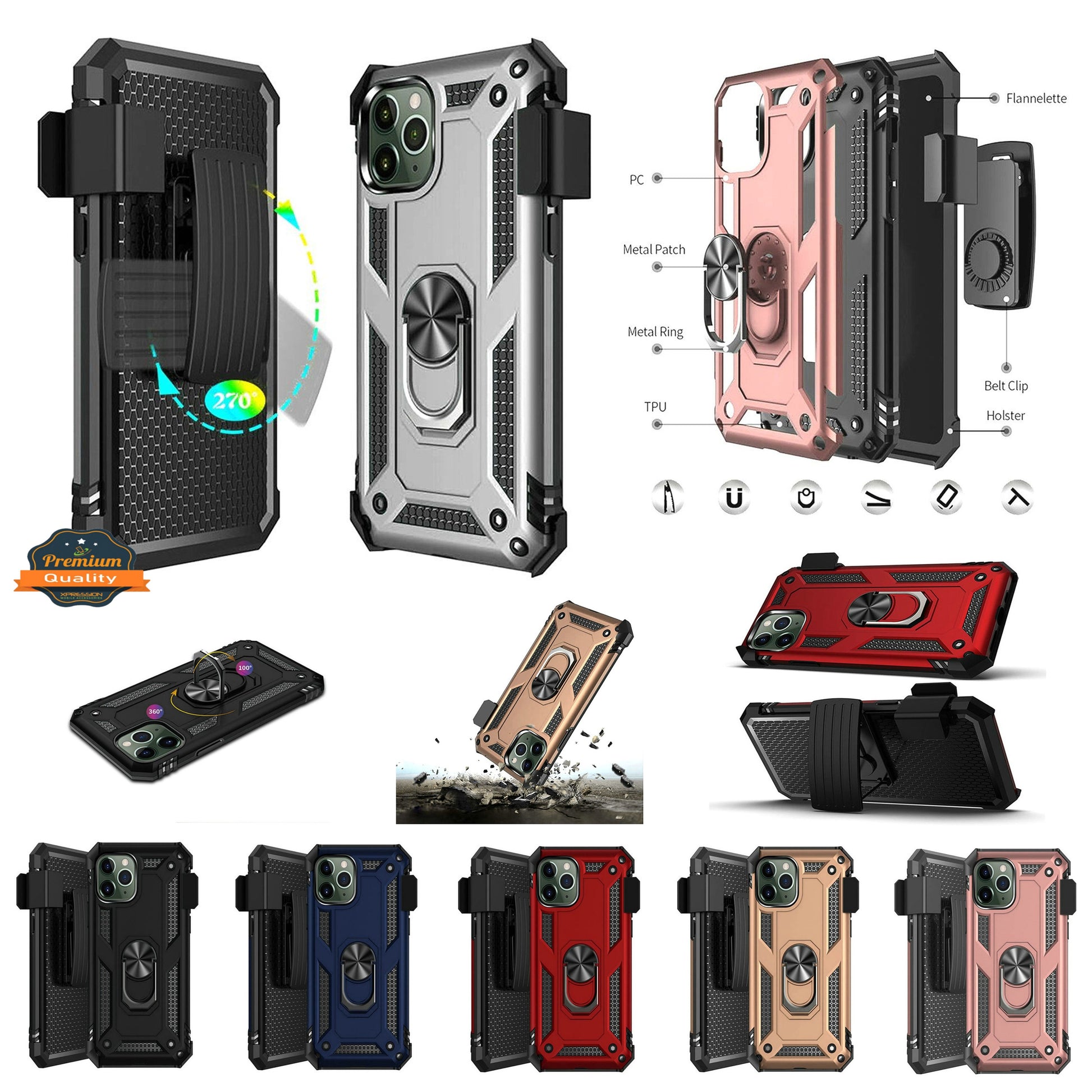 • Military Grade Protection case: Military Grade Full Body Cover. Belt Clip cover Prevents for your phone from accidental drops and slip and provides with multiple-viewing angles for watching video and movie as a kickstand. Environmentally friendly materials make the case more healthy for you, provide aesthetic with 360 Metal Rotating Ring Built-in Magnetic Car Mount.