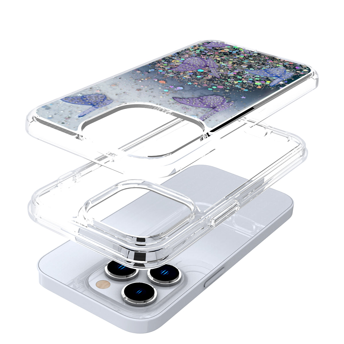 For Apple iPhone SE 3 (2022) SE/8/7 Butterflies Glitter Bling Shiny Sparkle Glittering Flake Hybrid Hard PC TPU Slim Phone Case Cover