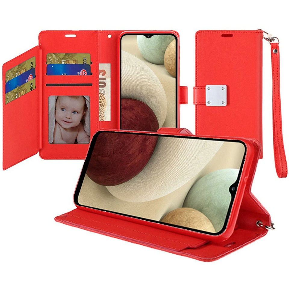 Red Cell Phone Case For Apple iPhone SE 4 Premium Synthetic Leather Wallet Pouch Case with Wrist Strap Lanyard and Kickstand, Folio Flip extra Credit Card Pockets Hidden Cash Storage ID Slots Money Holder [Magnetic Closure] Phone Cover.
