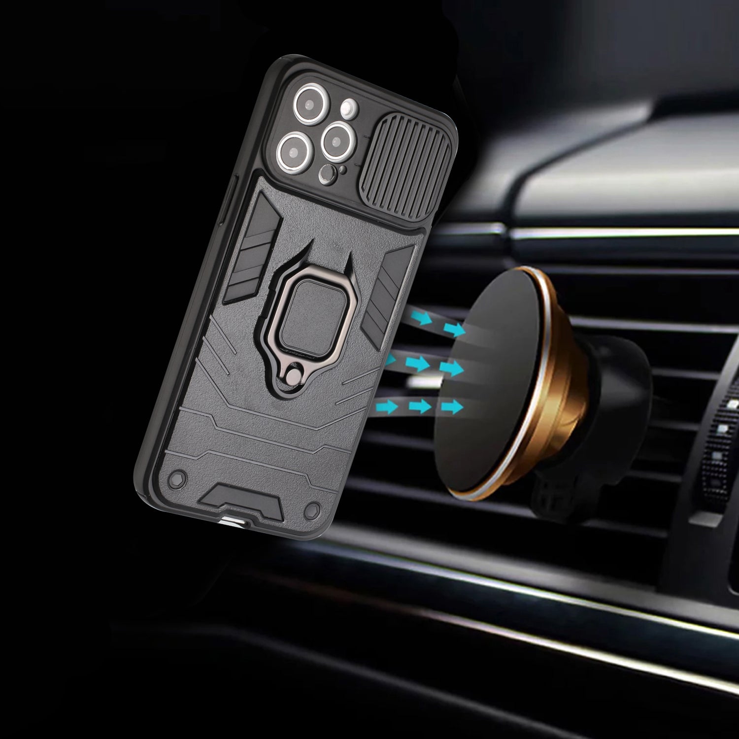 Urban Design Hybrid Magnetic Ring Stand Armor Defender with Camera Cover & Kickstand Military Grade Shockproof Heavy Duty Protective with Magnetic Car Mount Holder