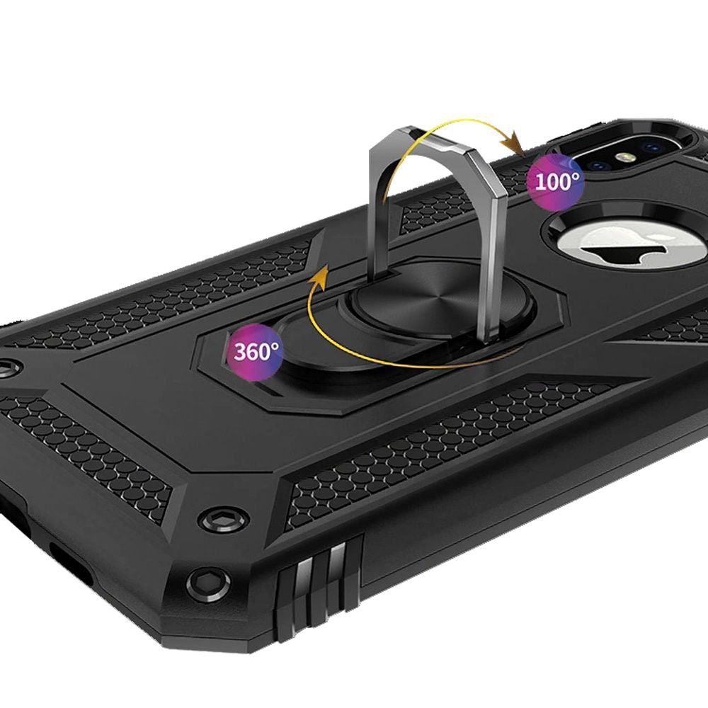Extreme Protection Military Grade Armor Dual Layer Protective Cover with 360 Degree Swivel Ring Stand Shockproof Adsorption Hard Magnetic Ring Holder for Car Mount with Kickstand