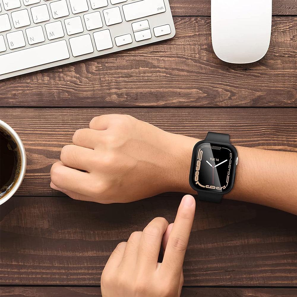 For Apple Watch Series 8 /7 (45mm) Slim PC with Built in Clear Screen Protector Snap-on Full Coverage Shell TPU + Hard PC Frame for iWatch 45 MM Series 8 /7 Black