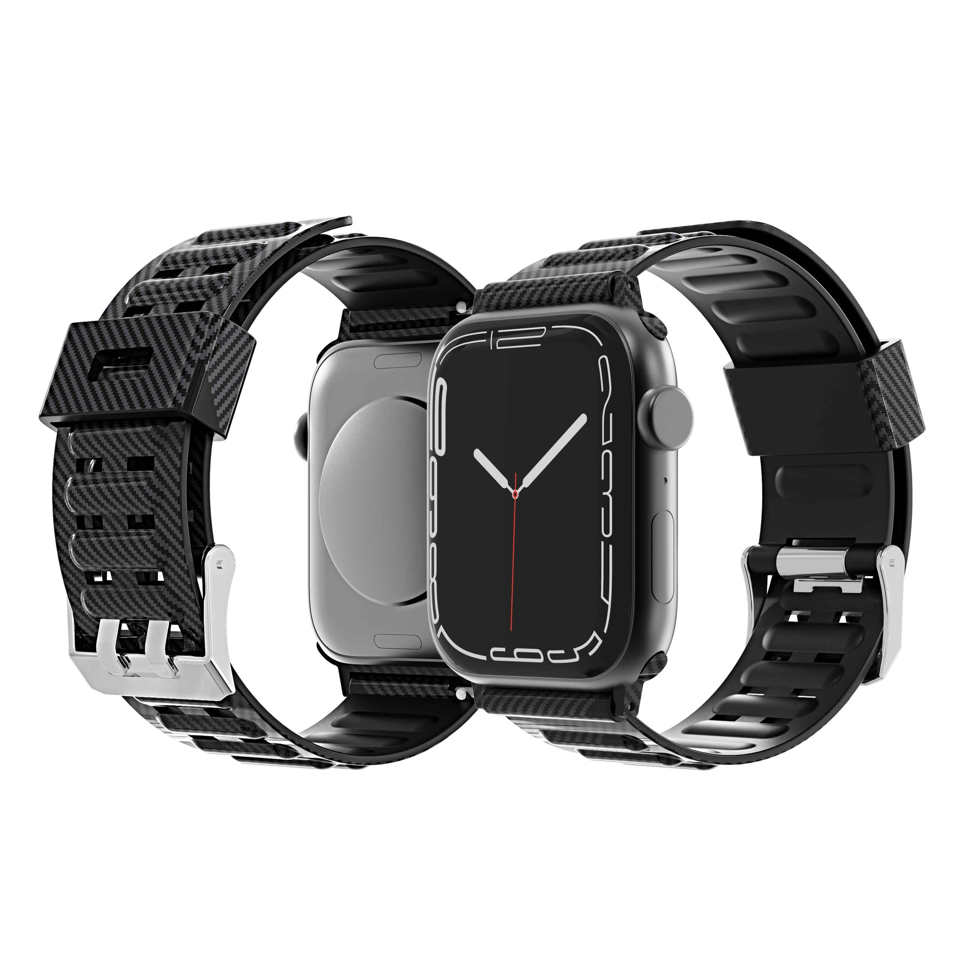 Apple Watch Size 38/40/41mm Sport Bands Carbon Fiber Design Rubber TPU Replacement Band Strap for iWatch Series 7/SE/6/5/4/3/2/1