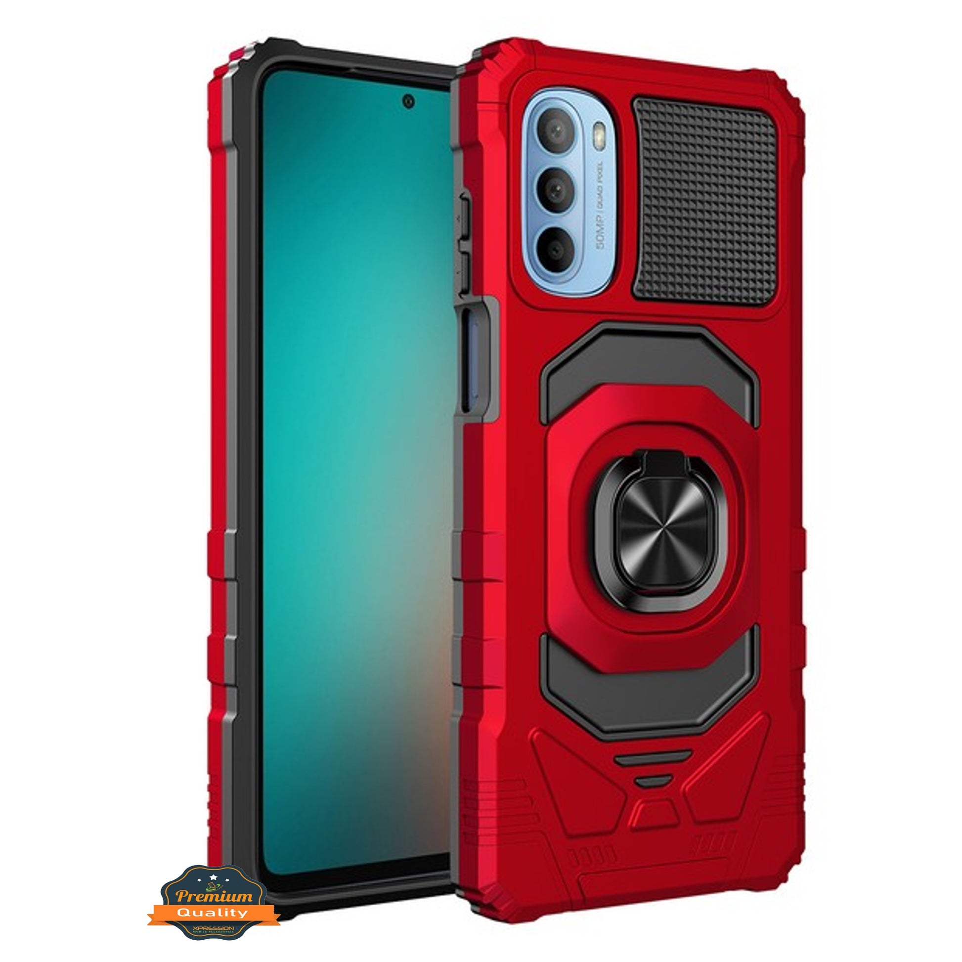 Military Style Armor Case with Rotating Ring Holder, Kickstand and Metal Stand Hybrid Dual Layer Hard PC and Rubber TPU Gel Rugged Cover for Magnetic Car Mount [Car Mount Holder Not Included]