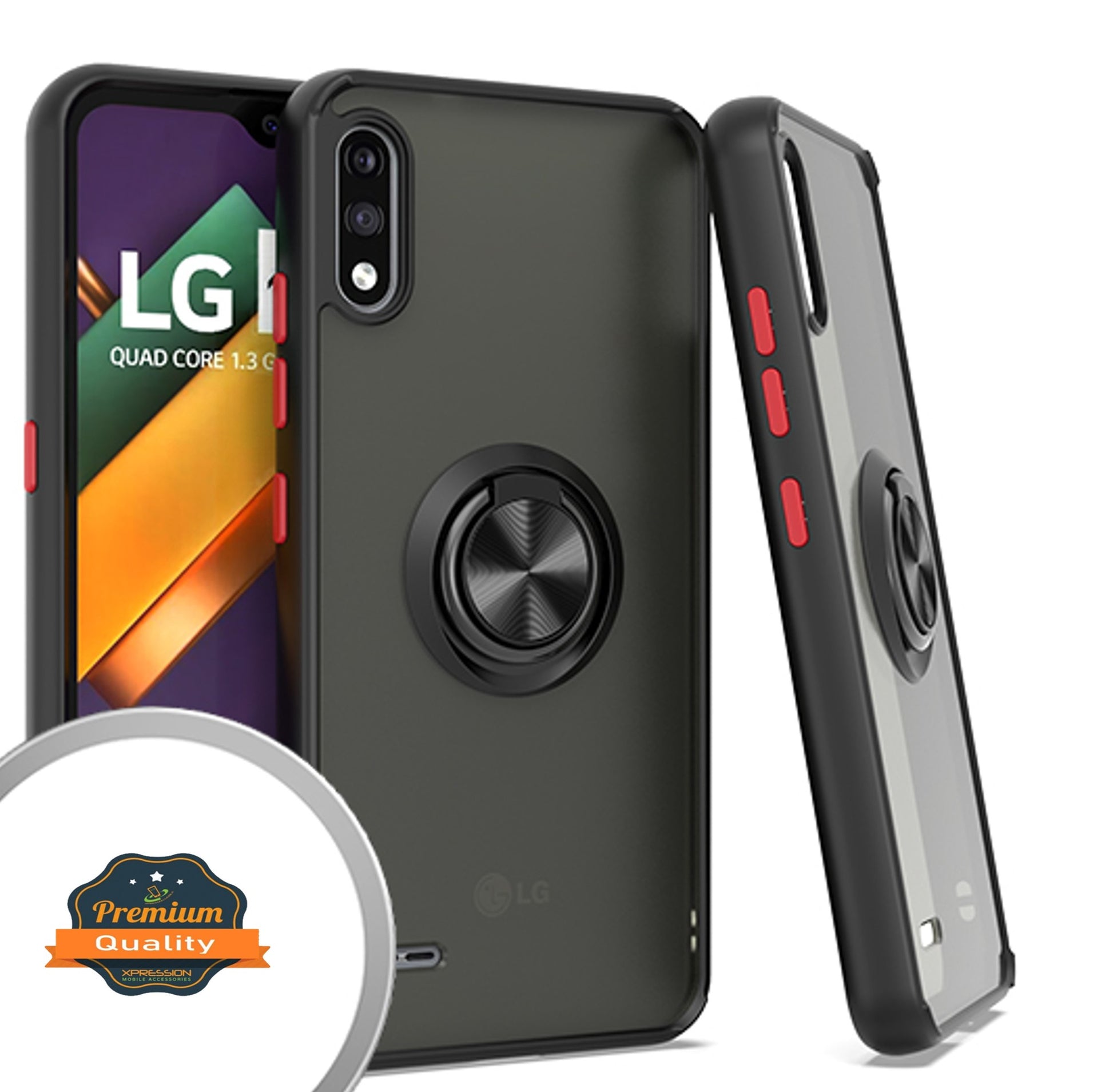 Premium Soft Black TPU Bumper + Hard PC Cover + Metal Ring Stand with 360 Degree Rotation Fit Magnetic Car Mount Frost Semi Transparent color Lightweight Slim Fit [Magnetic Ring Stand] Skin Cover