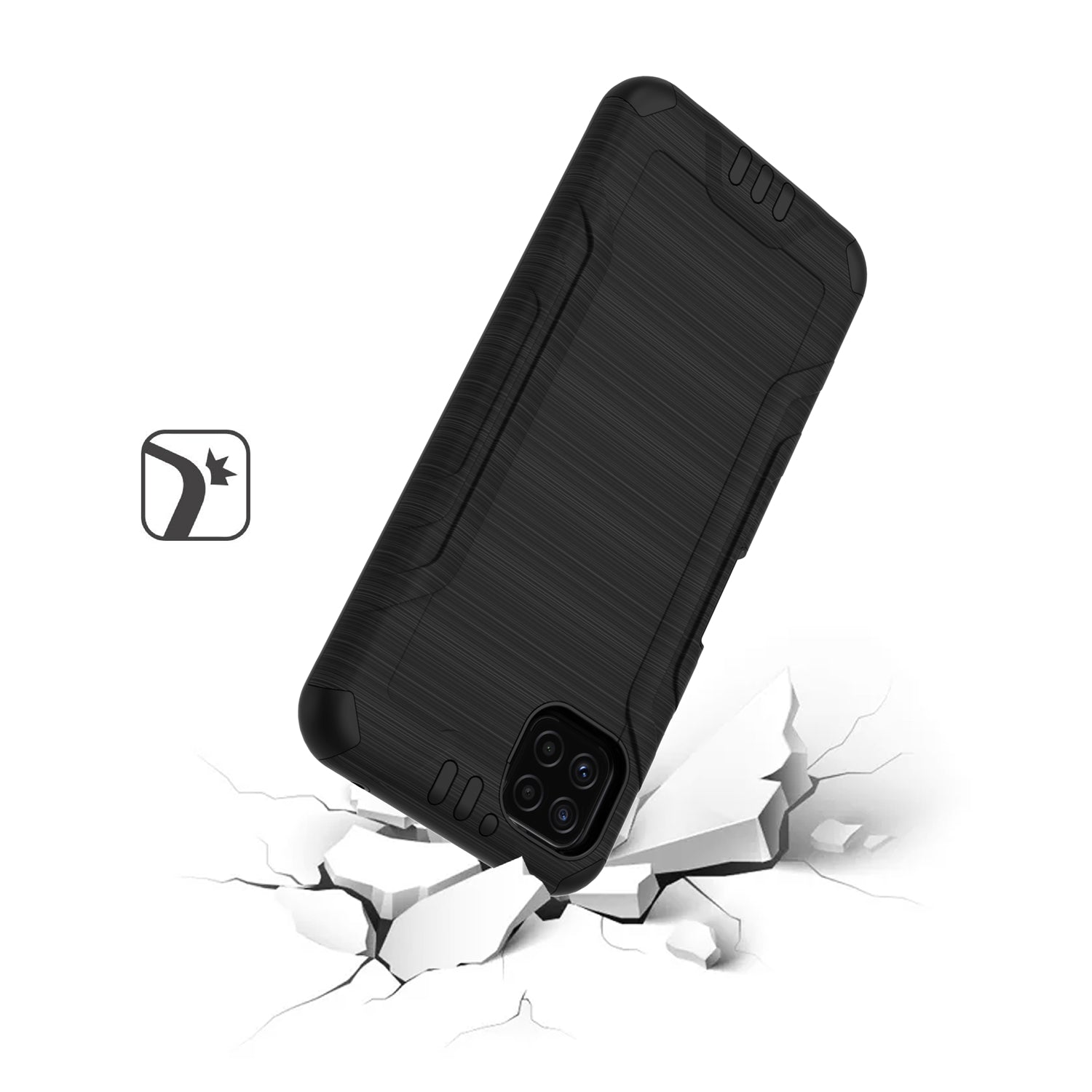 For Boost Mobile Celero 5G Hybrid Dual Layer Slim Defender Armor Tuff Metallic Brush Texture Finishing Shockproof Hard TPU Rubber Phone Case Cover