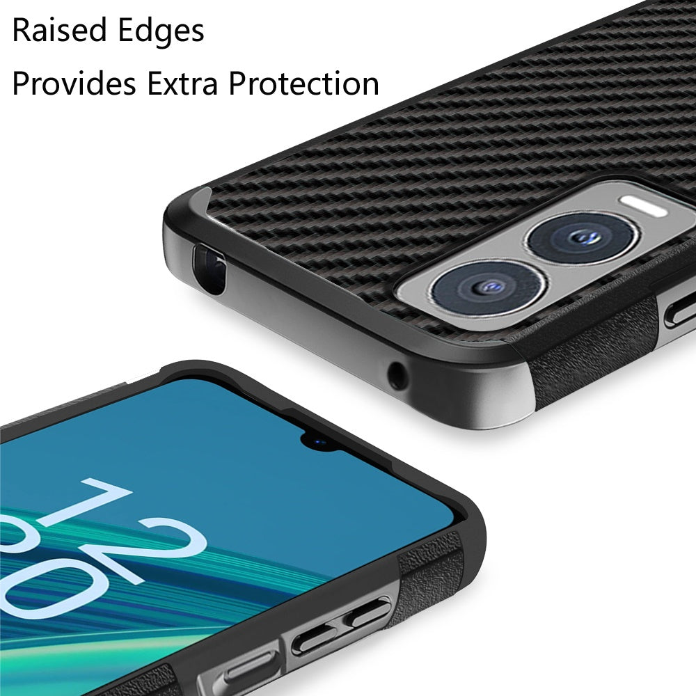 For Cricket Debut S3 Fashion Graphic Design Pattern Hard PC TPU 2in1 Tough Strong Hybrid Shockproof Armor Frame (Magnet Mount Friendly) Case Cover Carbon Fiber Black