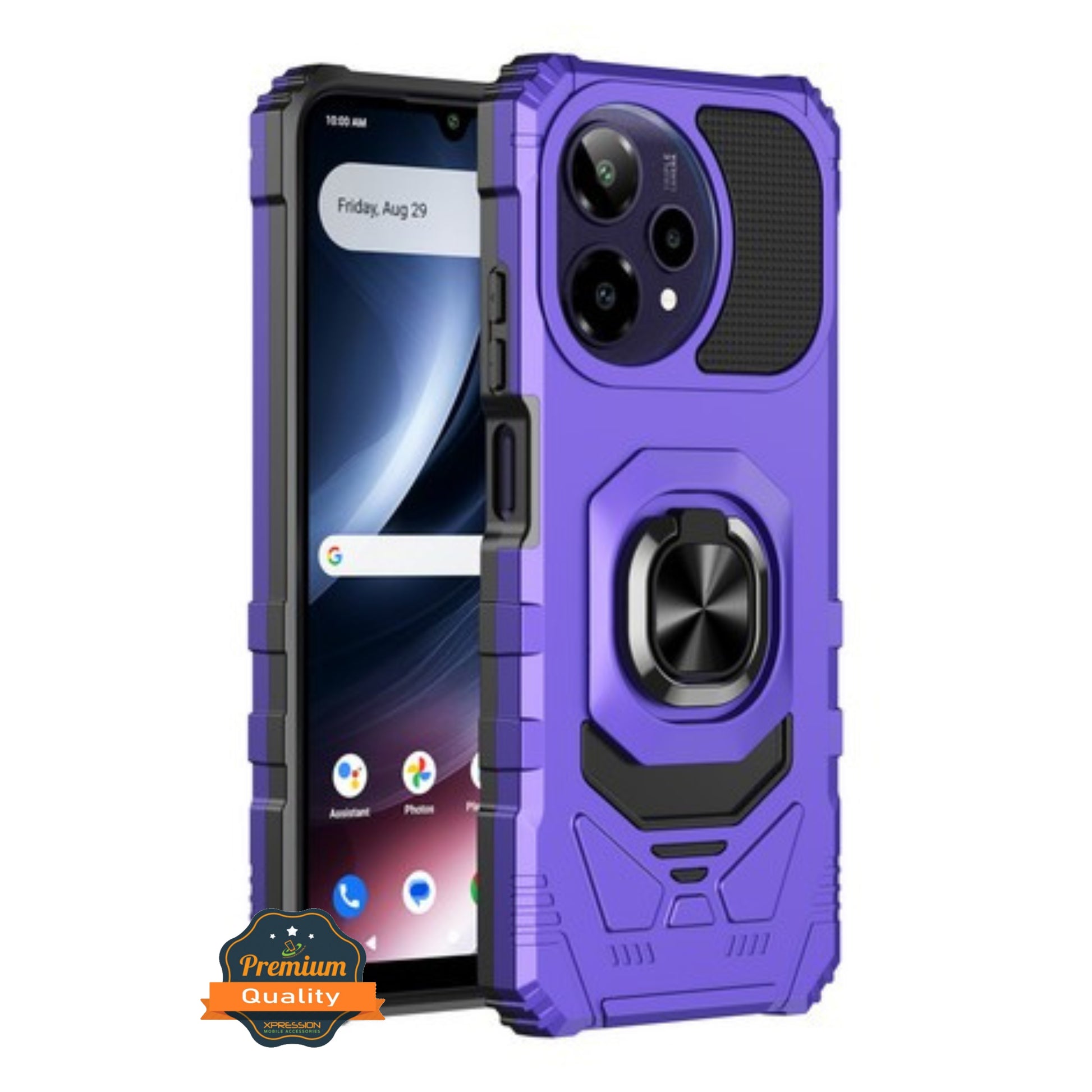 Phone Case Cover For Cricket Icon Pro 2026 Military Style Armor Case with Rotating Ring Holder, Kickstand and Metal Stand Hybrid Dual Layer Hard PC and Rubber TPU Gel Rugged Cover for Magnetic Car Mount [Car Mount Holder Not Included]. The built-in magnetic ring holder is compatible with magnetic car mount that can be rotated to your desired position as a finger holder or stand for any viewing angle.