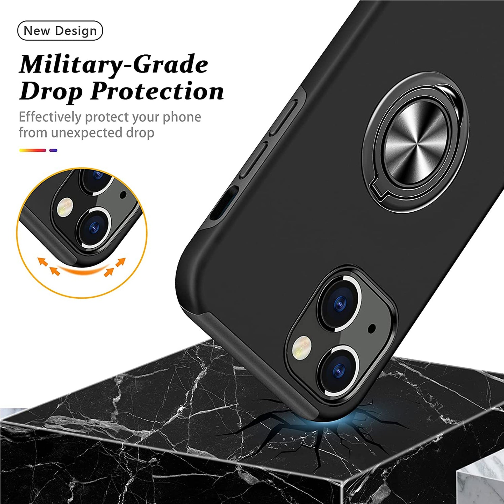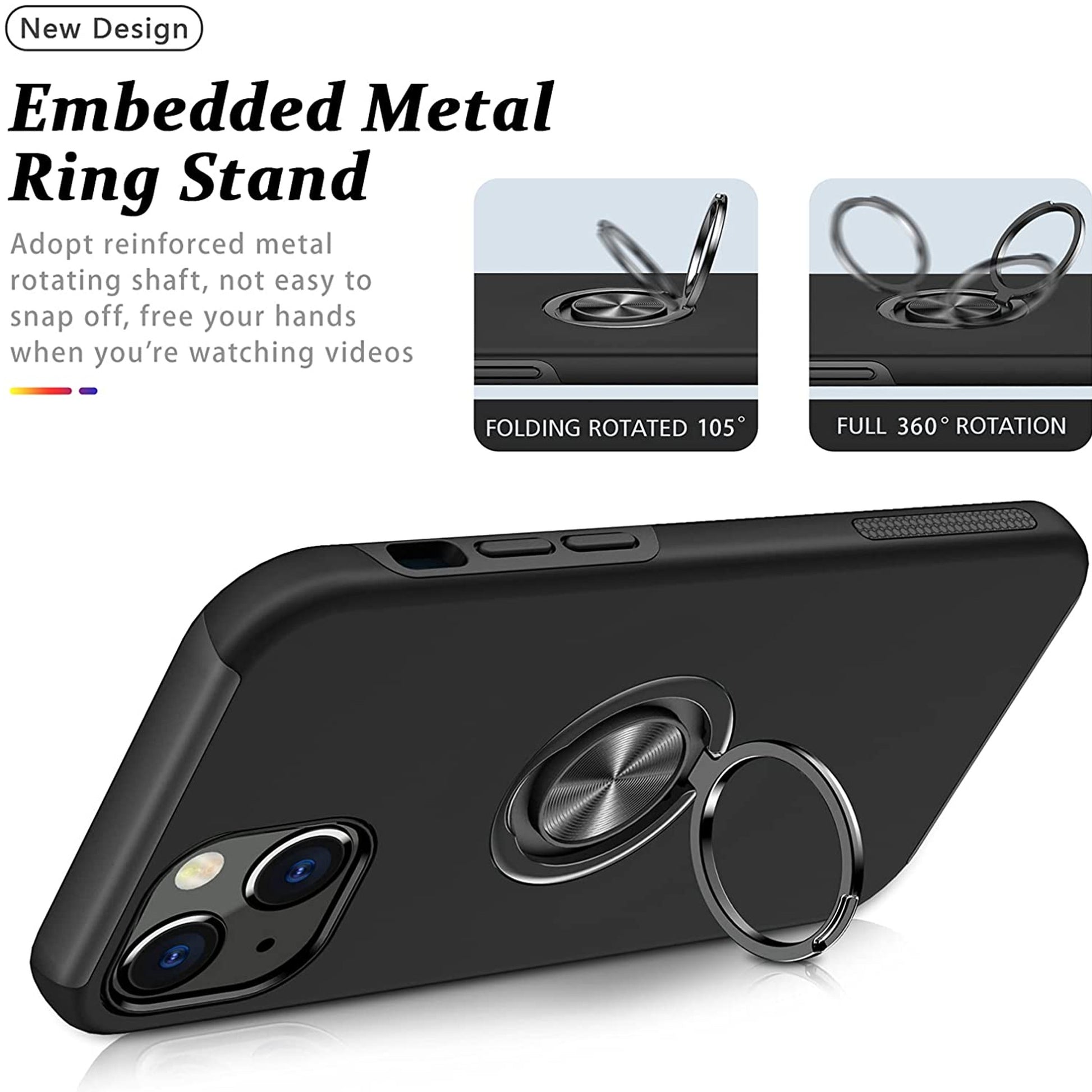 • Slim Fit Case with Flat Rotating Ring Holder, Kickstand and Metal Stand Hybrid Dual Layer Hard PC and Rubber TPU Cover work with Magnetic Car Mount [Car Mount Holder Not Included]