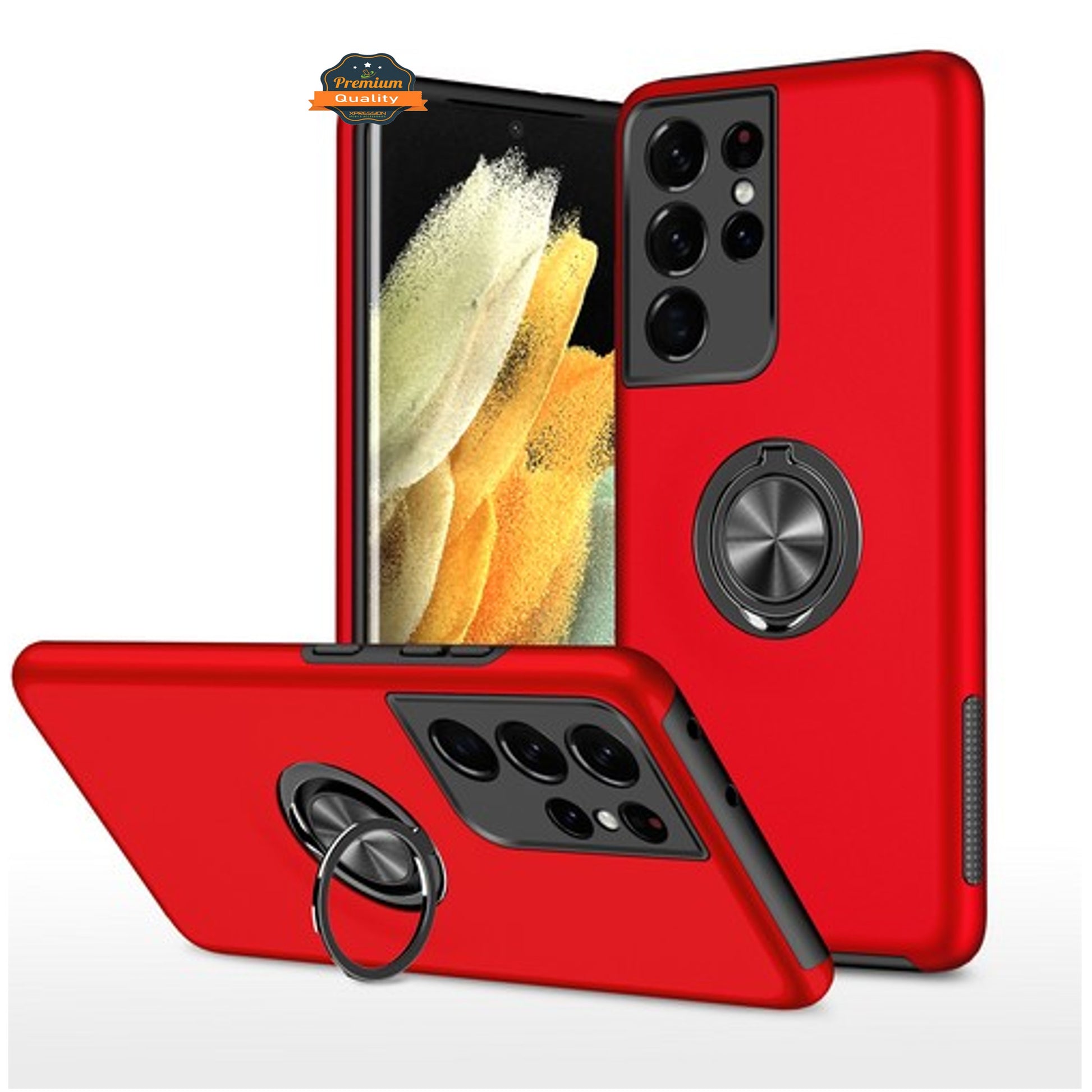 • Slim Fit Case with Flat Rotating Ring Holder, Kickstand and Metal Stand Hybrid Dual Layer Hard PC and Rubber TPU Cover work with Magnetic Car Mount [Car Mount Holder Not Included]