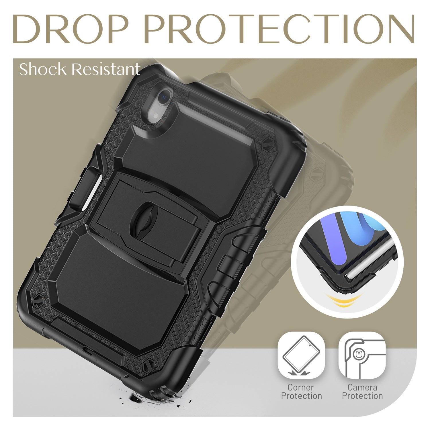 Black Protect your Tablet with this heavy-duty full-body rugged case, designed for shockproof protection against drops, bumps, and daily wear. Featuring a built-in kickstand for hands-free convenience, this case allows for comfortable viewing and typing angles. Its reinforced corners and raised edges add extra defense for the screen and camera, while precise cutouts ensure easy access to all ports and functions. With a non-slip grip and durable construction, this case is perfect for work, travel, or everyday use.